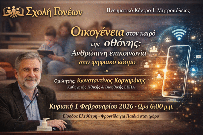 Σχολή Γονέων: Εκδήλωση για την οικογένεια στην εποχή της οθόνης στο Πνευματικό Κέντρο της Ι. Μητρόπολης