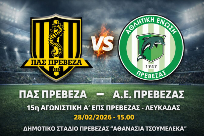 Το Σάββατο 28/2/26 στις 15:00 στο ΔΑΚ ΠΡΕΒΕΖΑΣ οι κορασίδες […]