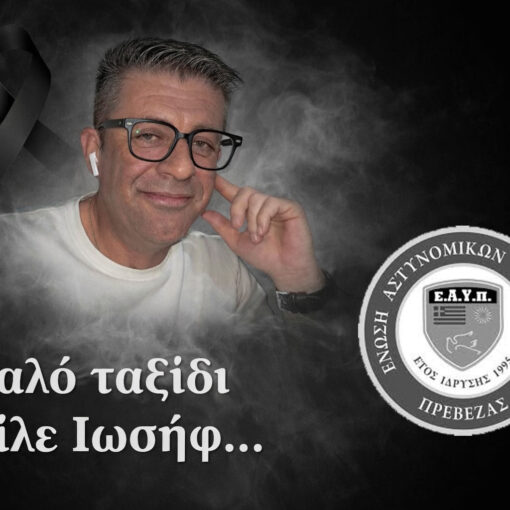 Συλλυπητήρια επιστολή της Ένωσης αστυνομικών Πρέβεζας για την απώλεια του συναδέλφου τους
