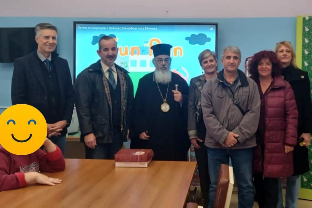 Ο Σεβασμιώτατος μοίρασε γλυκά στους μικρούς μαθητές, ενώ ο κ. Αργυρός έφερε στους μαθητές Χριστουγεννιάτικα βιβλία και παζλ.