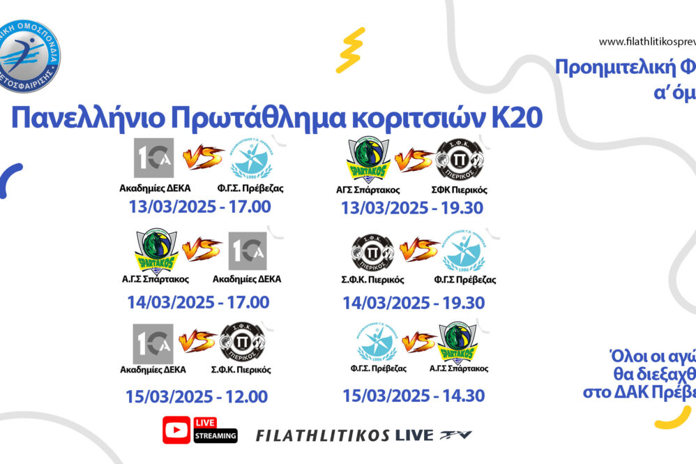 Το πρόγραμμα της προημιτελικής φάσης του πανελληνίου πρωταθλήματος γυναικών Κ20.