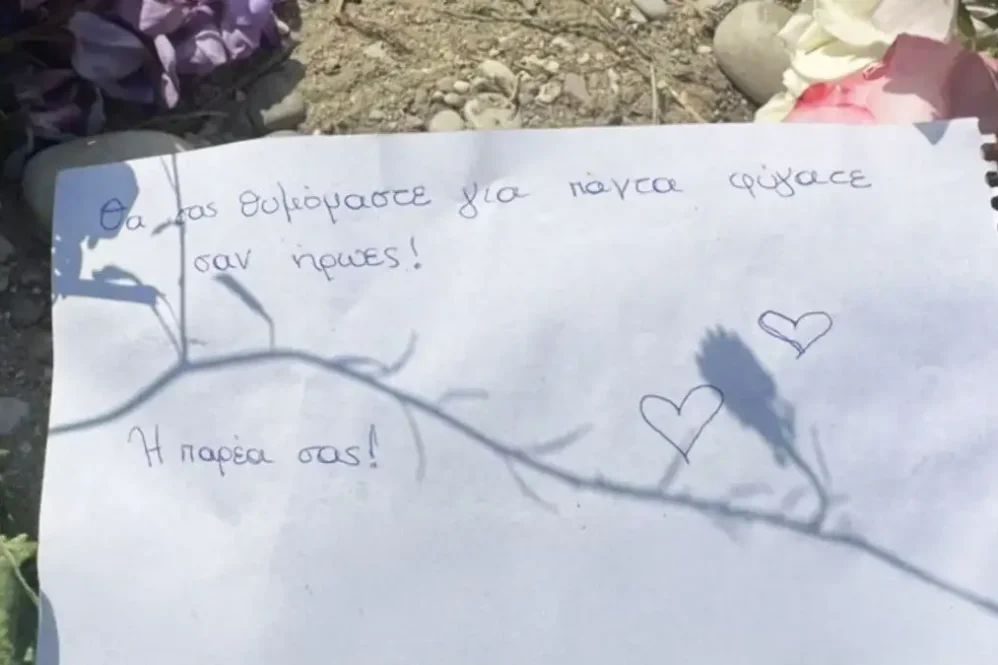 Συγκινητικός είναι ο τρόπος που αποχαιρετούν τα δύο παιδιά οι φίλοι τους. Έχουν αφήσει λουλούδια και ένα σημείωμα στην όχθη του ποταμού που γράφει. «Θα σας θυμόμαστε για πάντα, φύγατε σαν ήρωες… Η παρέα σας».