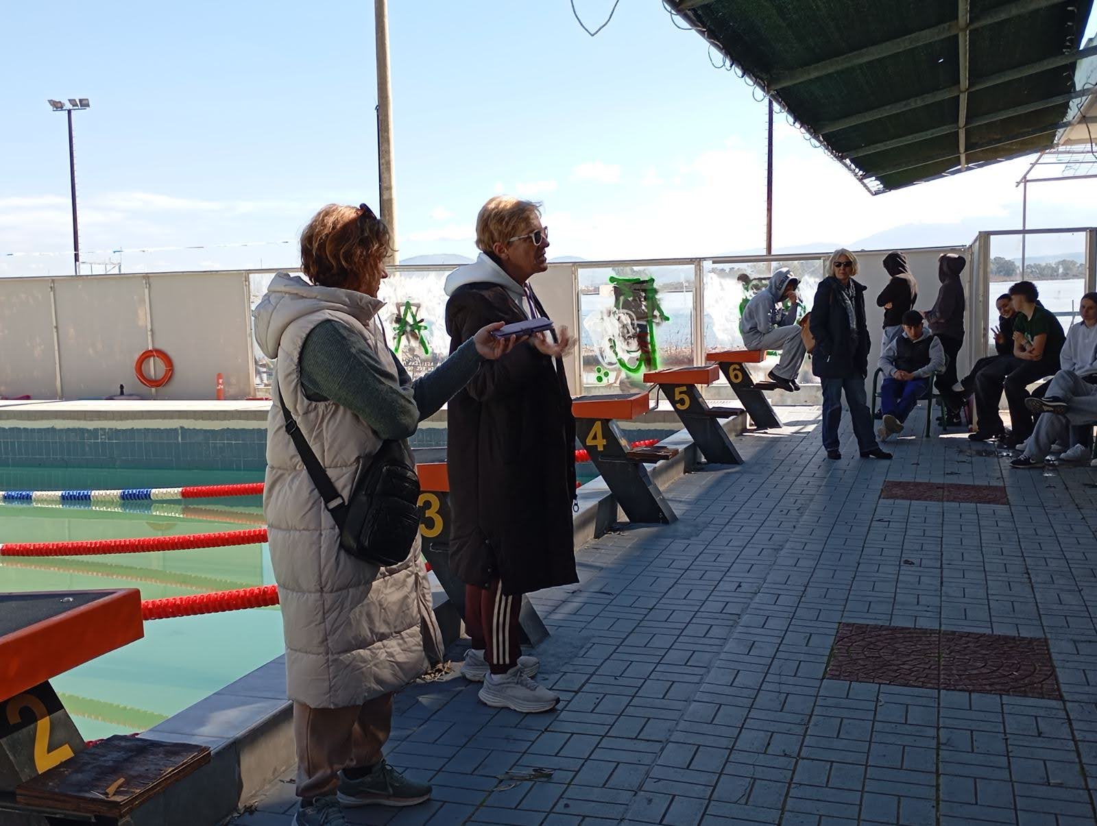 Στο κολυμβητήριο πραγματοποιήθηκε συνέντευξη με τη γυμνάστρια και προπονήτρια κολύμβησης κα Λύρου Ιουλία, με αντικείμενο την ανάπτυξη του αθλητικού τουρισμού στην περιοχή και ειδικότερα τις προοπτικές της κολύμβησης ως μορφής εναλλακτικού τουρισμού. Η δράση υλοποιήθηκε με τη συμμετοχή των μαθητών και μαθητριών της ομάδας του προγράμματος, υπό την καθοδήγηση των υπεύθυνων καθηγητριών: Γιαννούλη Σοφία, Μαγαλιού Μαρία και Πασσά Όλγα, οι οποίες συντόνισαν τη διαδικασία της έρευνας, της προετοιμασίας και της διεξαγωγής της συνέντευξης.