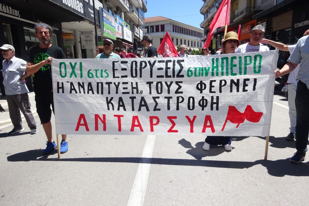 Χαιρετίζουμε τους εκατοντάδες πολίτες της περιοχής μας που συμμετείχαν στο συλλαλητήριο που διοργανώθηκε στα Γιάννενα στις 15 Ιούνη ενάντια στις εξορύξεις υδρογονανθράκων. Οι τοπικές επιτροπές Ηπείρου της ΑΝΤ.ΑΡ.ΣΥ.Α καλούνε σε κλιμάκωση του αγώνα ενάντια στην εξόρυξη υδρογονανθράκων στη περιοχή μας. Καλούμε τα συνδικάτα , συλλογικότητες , δημοτικές και περιφερειακές κινήσεις, περιβαλλοντικές ομάδες , ορειβατικούς συλλόγους , πολιτιστικούς και μορφωτικούς συλλόγους να σηκώσουν το ανάστημά τους στην επέλαση των ενεργειακών κολοσσών. Καλούμε αυτούς που γυρίζουν τη πλάτη τους στη προσπάθεια κινητοποίησης του λαού ενάντια στις εξορύξεις να συμβάλλουν στην ανάπτυξη του αγώνα.