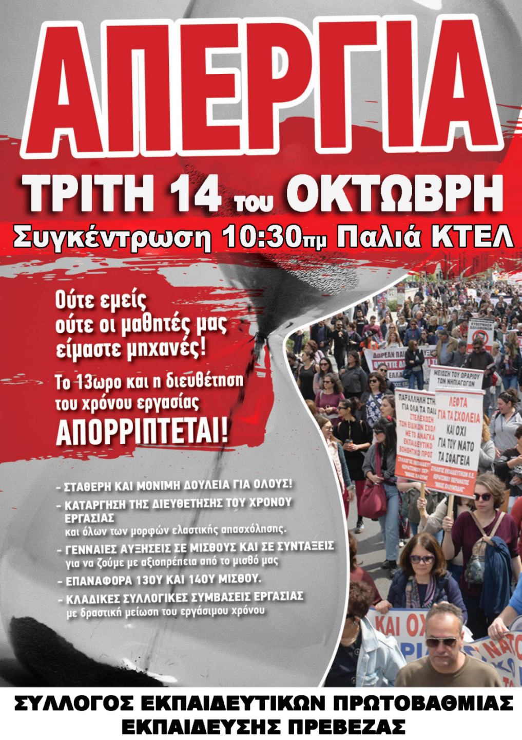ΟΛΟΙ ΣΤΗΝ ΑΠΕΡΓΙΑ ΤΗΝ ΤΡΙΤΗ 14 ΟΚΤΩΒΡΙΟΥ
