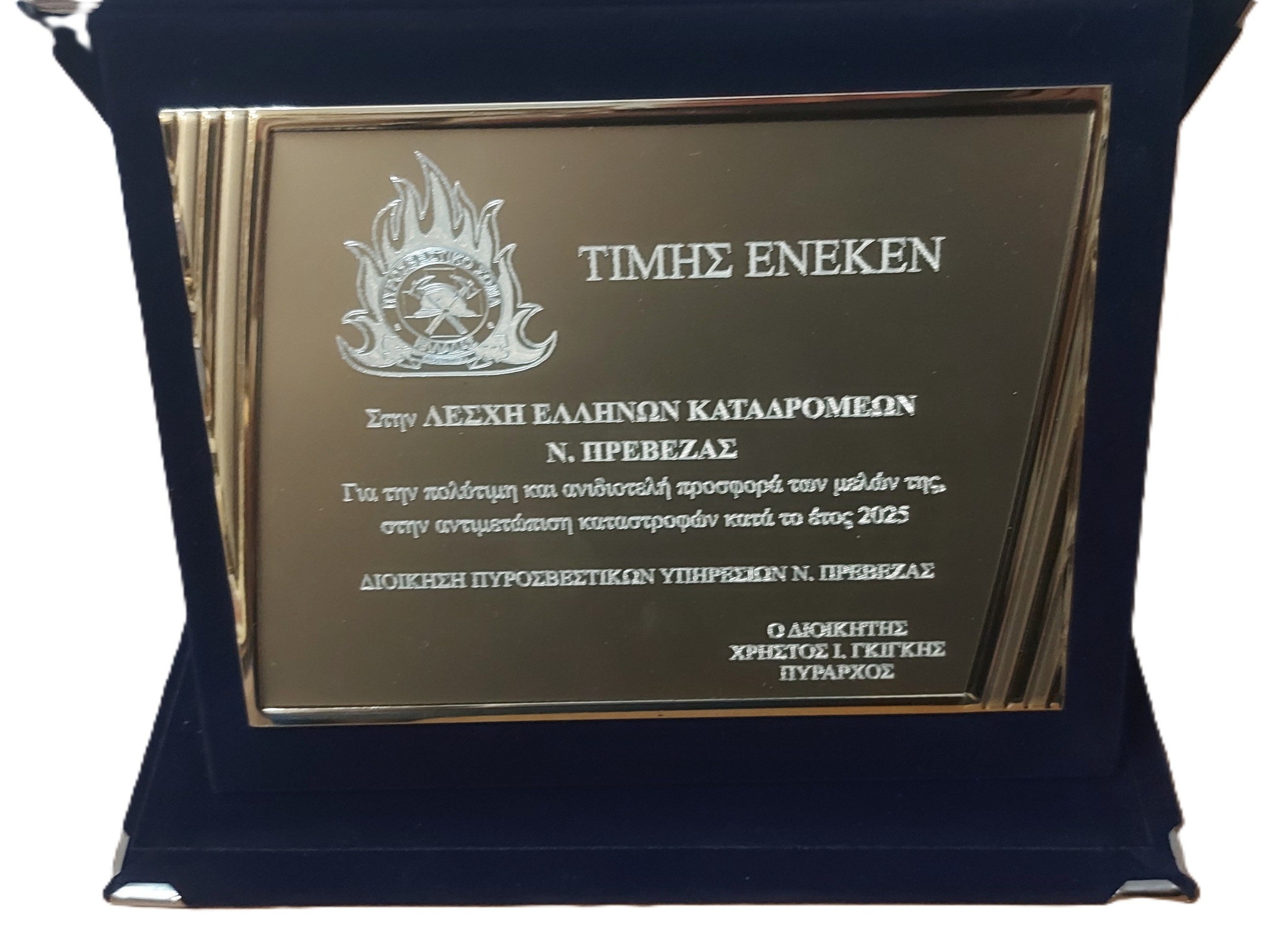 Την απονομή πραγματοποίησε ο Διοικητής της ΔΙ.Π.Υ.Ν. Πρέβεζας, Πύραρχος Χρήστος Γκίγκης, εκπροσωπώντας έναν θεσμό που διαχρονικά βρίσκεται στην πρώτη γραμμή της προστασίας του πολίτη και της κοινωνικής προσφοράς. Η συγκεκριμένη τιμητική πράξη δεν αποτέλεσε απλώς μια τυπική διαδικασία, αλλά μια έμπρακτη αναγνώριση της εξαιρετικής συνεργασίας που αναπτύχθηκε, της διαρκούς υποστήριξης και της κοινής προσπάθειας που καταβλήθηκε με στόχο την προαγωγή της ασφάλειας και της κοινωνικής ευθύνης.