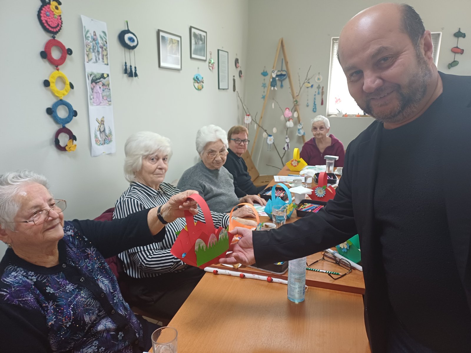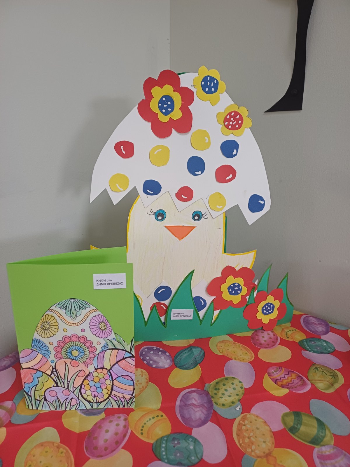 Οι ωφελούμενοι ανταπέδωσαν με μια πασχαλινή χειροτεχνία  και μια πασχαλινή κάρτα με ευχές.