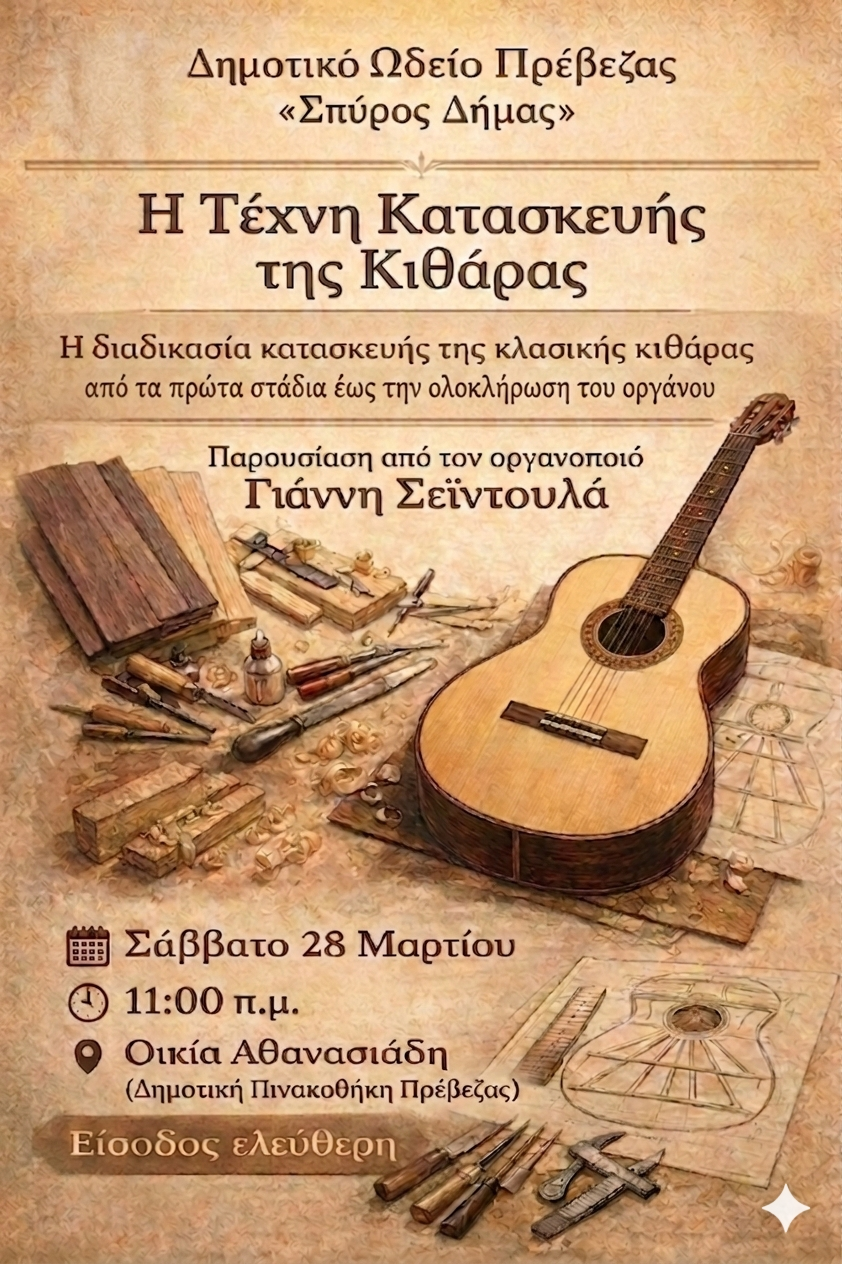 Δημοτικό Ωδείο Πρέβεζας «Σπύρος Δήμας»: «Η Τέχνη Κατασκευής της Κιθάρας» Παρουσίαση