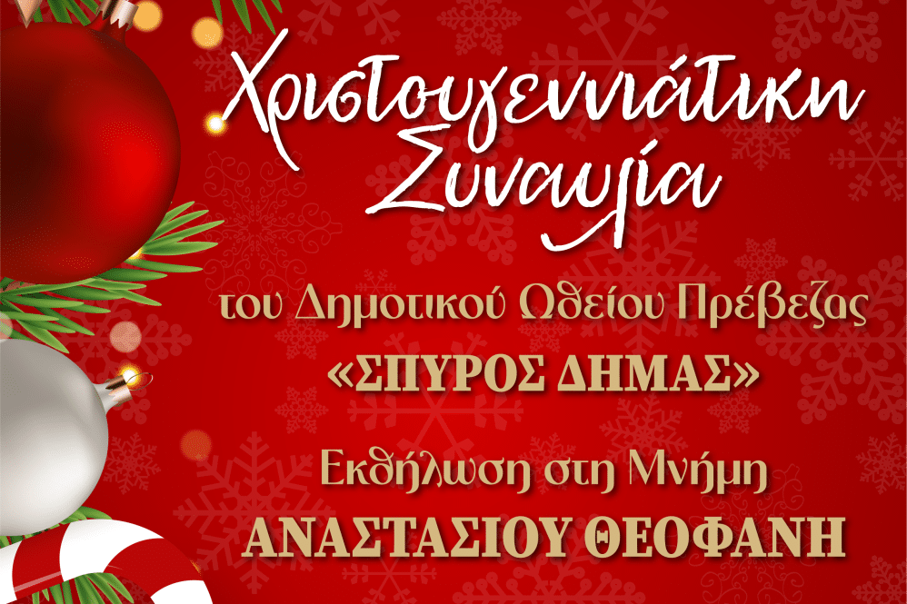 Σας προσκαλούμε να παρακολουθήσετε τη Χριστουγεννιάτικη συναυλία του Δημοτικού Ωδείου Πρέβεζας “Σπύρος Δήμας”, που θα πραγματοποιηθεί την Τετάρτη 11 Δεκεμβρίου 2024 ώρα 7 μ.μ., στο Πολιτιστικό Κέντρο Δήμου Πρέβεζας, πρώην Όαση.
