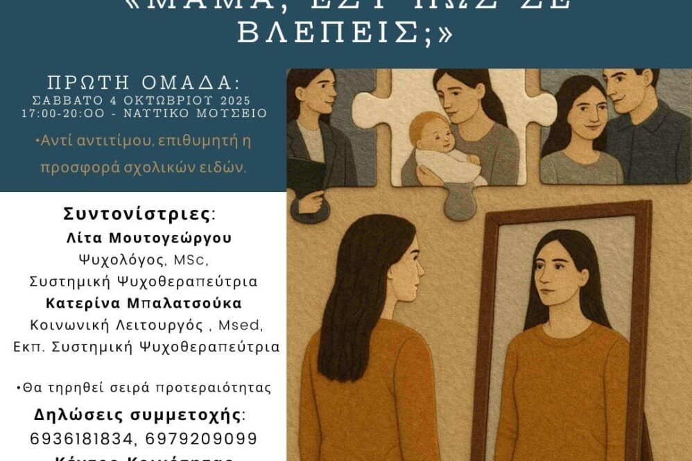 Συντονίστριες: Λίτα Μουτογεώργου, Ψυχολόγος, MSC, Συστημική Ψυχοθεραπεύτρια Κατερίνα Μπαλατσούκα, Κοινωνική Λειτουργός, Msed ,Εκπ. Συστημική Ψυχοθεραπεύτρια