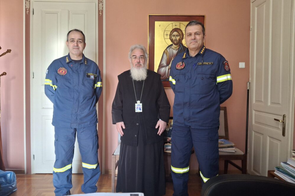 Ο Σεβασμιώτατος καλωσόρισε τον νέο Διοικητή, τον ευχαρίστησε για την επίσκεψη και του ευχήθηκε δύναμη και κάθε επιτυχία στα νέα του καθήκοντα, υπογραμμίζοντας τη σπουδαιότητα του έργου της Πυροσβεστικής Υπηρεσίας, τόσο για την ασφάλεια των πολιτών όσο και για την προστασία του φυσικού περιβάλλοντος.