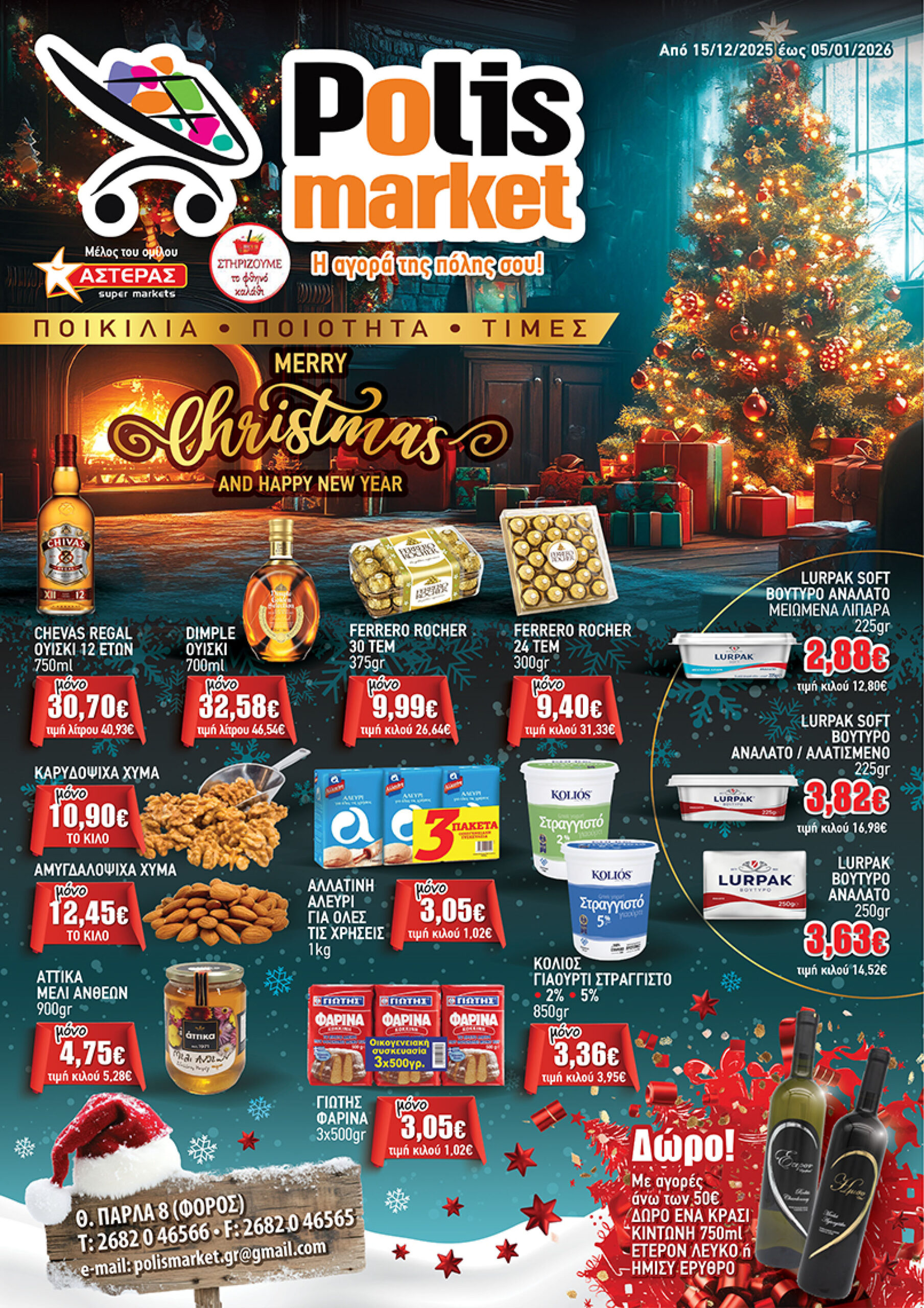 Το Polis Market, το δικό σας σούπερ μάρκετ σας υποδέχεται με Μεγάλες, Εορταστικές Προσφορές!!