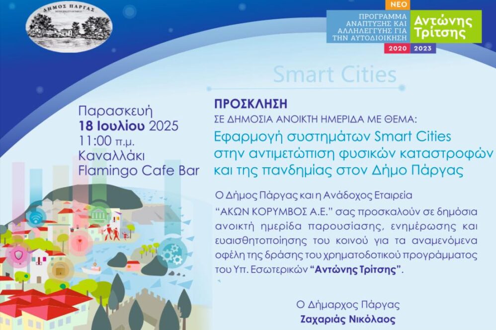 «Εφαρμογή συστημάτων Smart Cities στην αντιμετώπιση φυσικών καταστροφών και ενδεχόμενης πανδημίας στον Δήμο Πάργας»