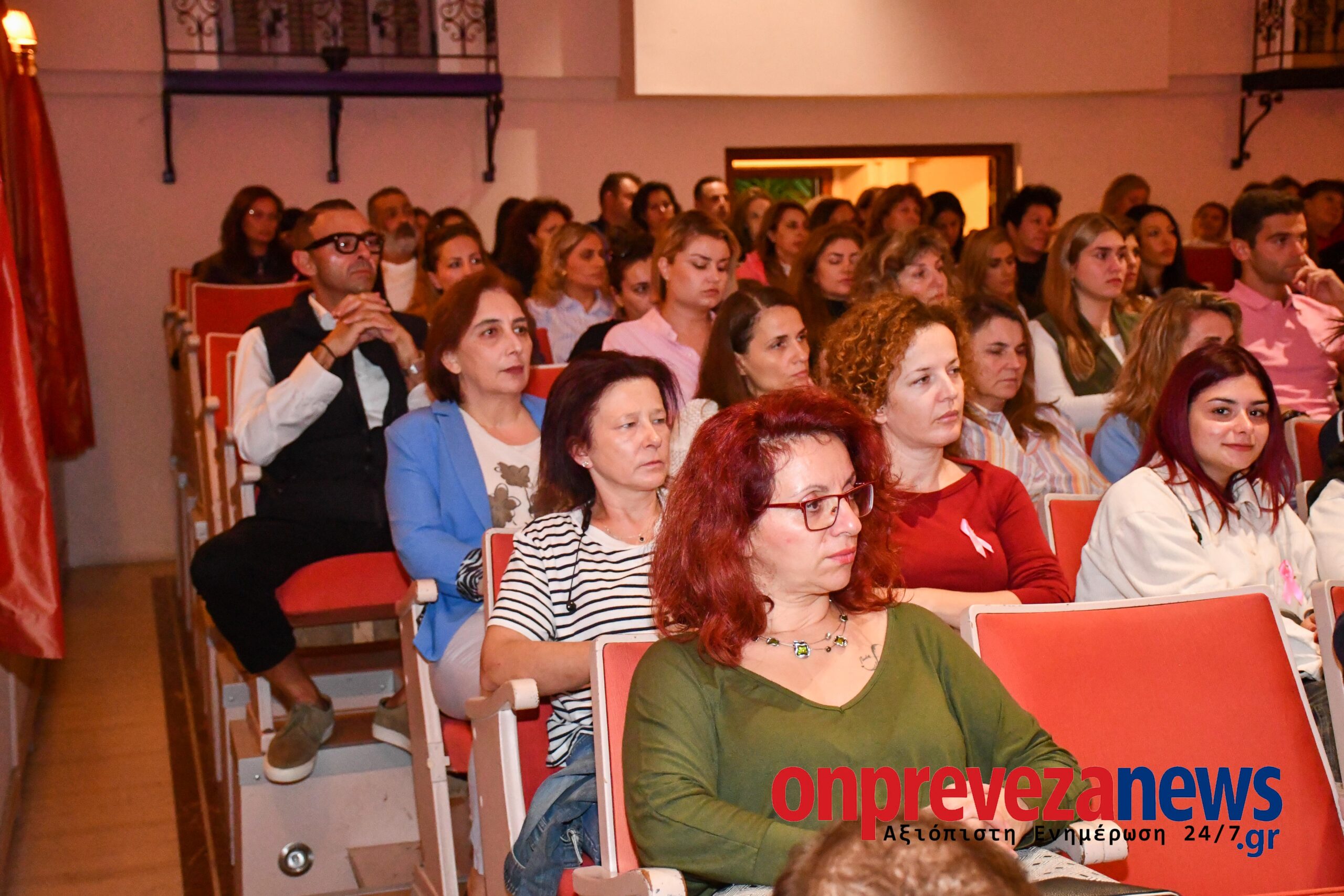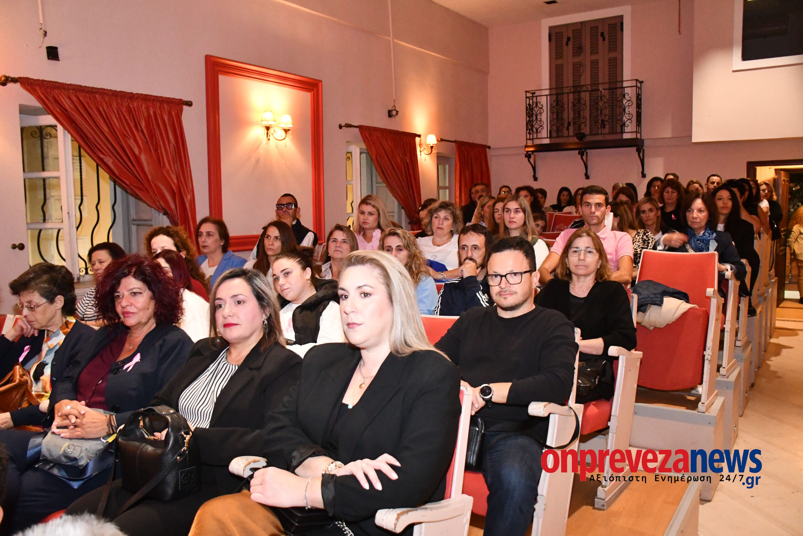 Με αφορμή αυτό, το Τμήμα Νοσηλευτικής του Πανεπιστημίου Ιωαννίνων, υπό την αιγίδα της Περιφέρειας Ηπείρου και του Δήμου Πρέβεζας, διοργάνωσε μια σπουδαία εκδήλωση ενημέρωσης για την πρόληψη του καρκίνου του μαστού, την Τετάρτη 15 Οκτωβρίου το απόγευμα στη Θεοφάνειο Δημοτική Αίθουσα Τέχνης Πρέβεζας.