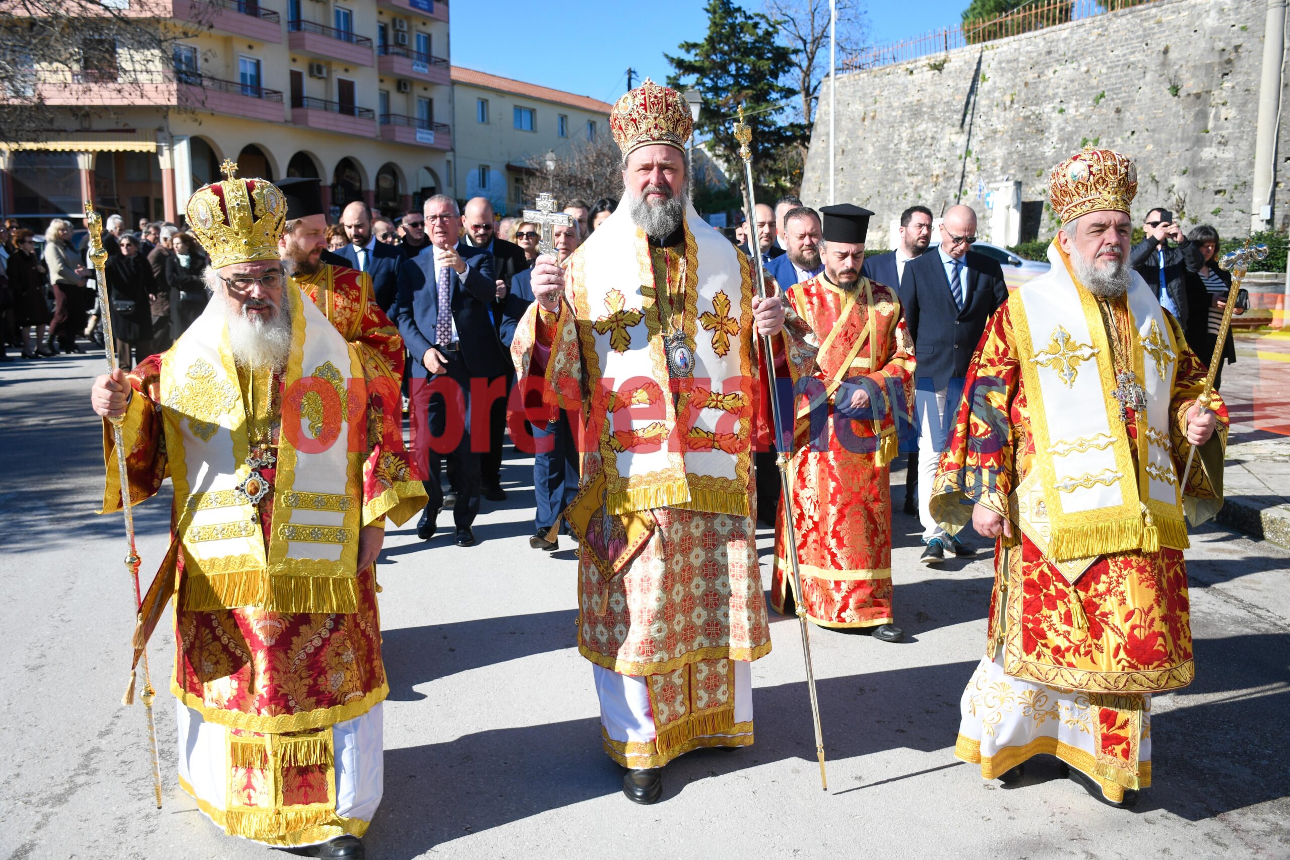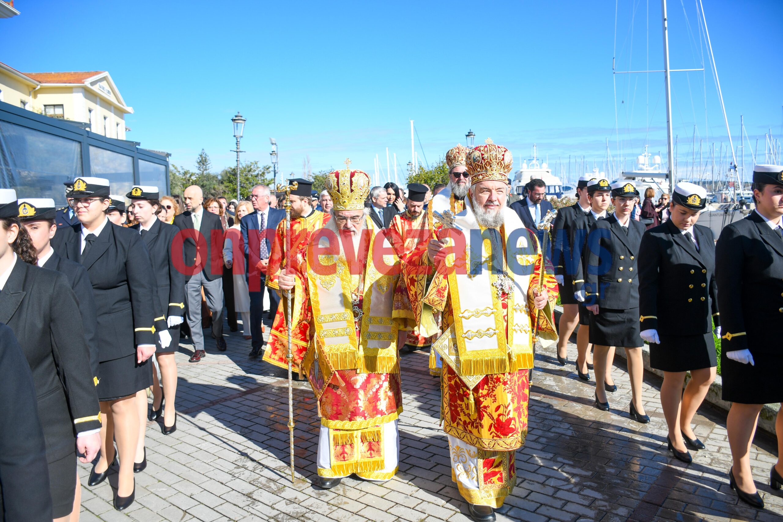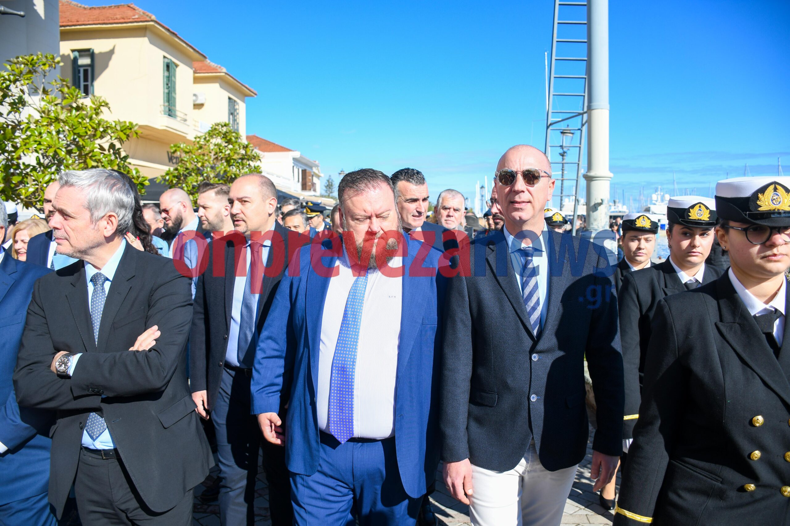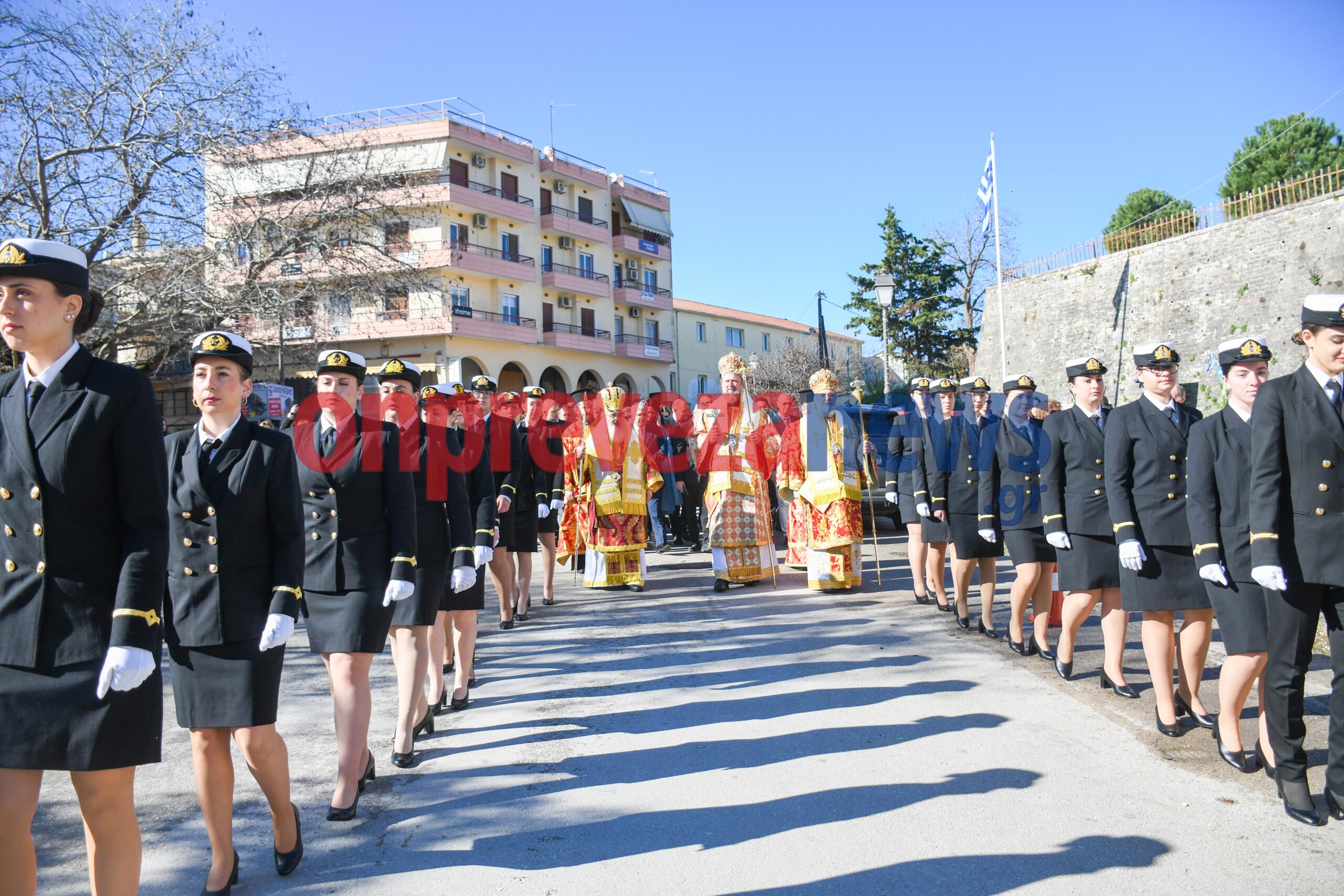 Η φιλαρμονική «Ορφέας» συνόδευσε την πομπή με βυζαντινούς και εμβατηριακούς ήχους, ενώ το χορευτικό τμήμα του Δήμου Πρέβεζας και άγηματα από την Ακαδημία Εμπορικού Ναυτικού και τον Στρατό έδωσαν τον επίσημο, τιμητικό τόνο της ημέρας με την ευθύνη της ασφάλειας να την έχει για ακόμη μια χρονιά η ΛΕΚ Πρέβεζας.