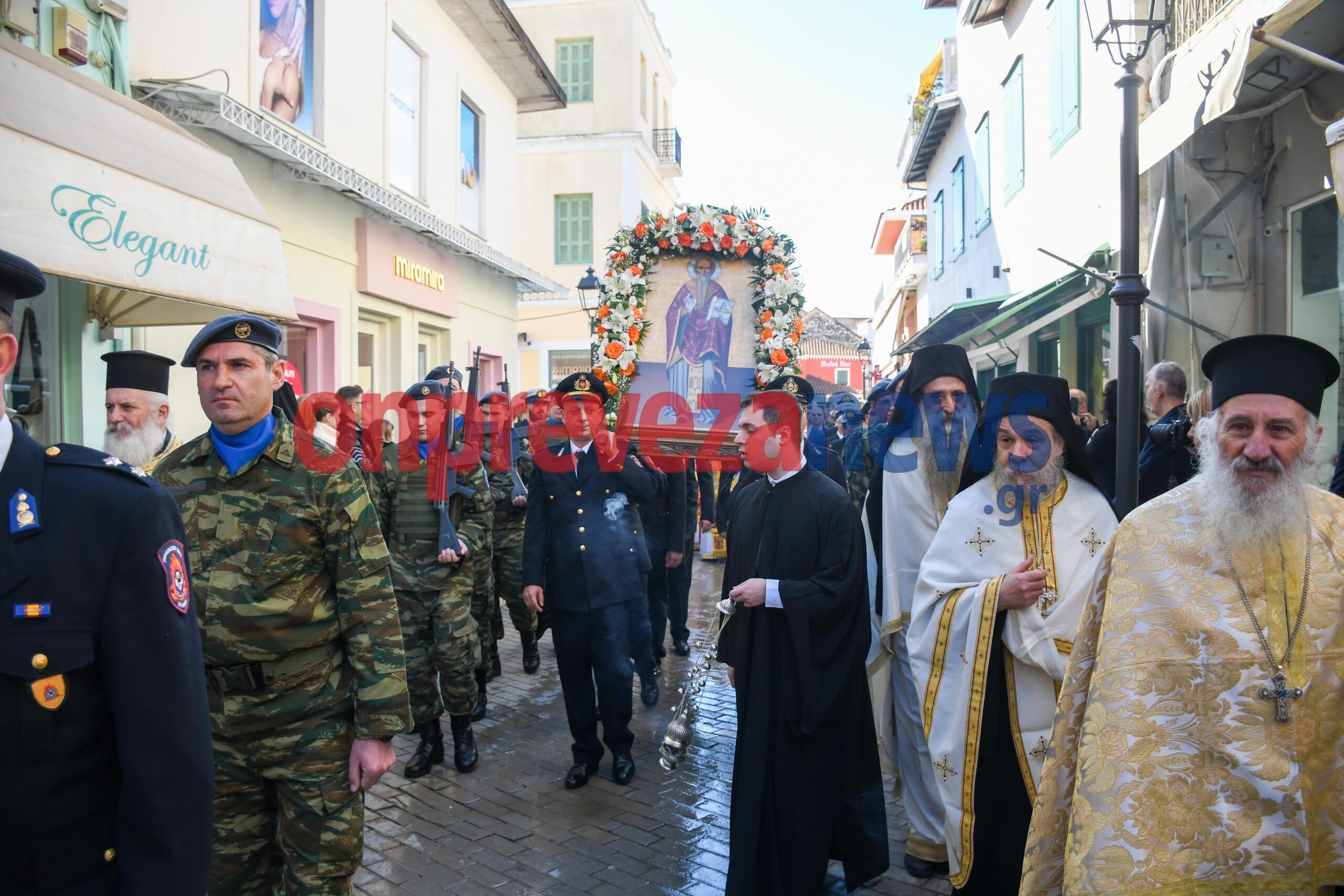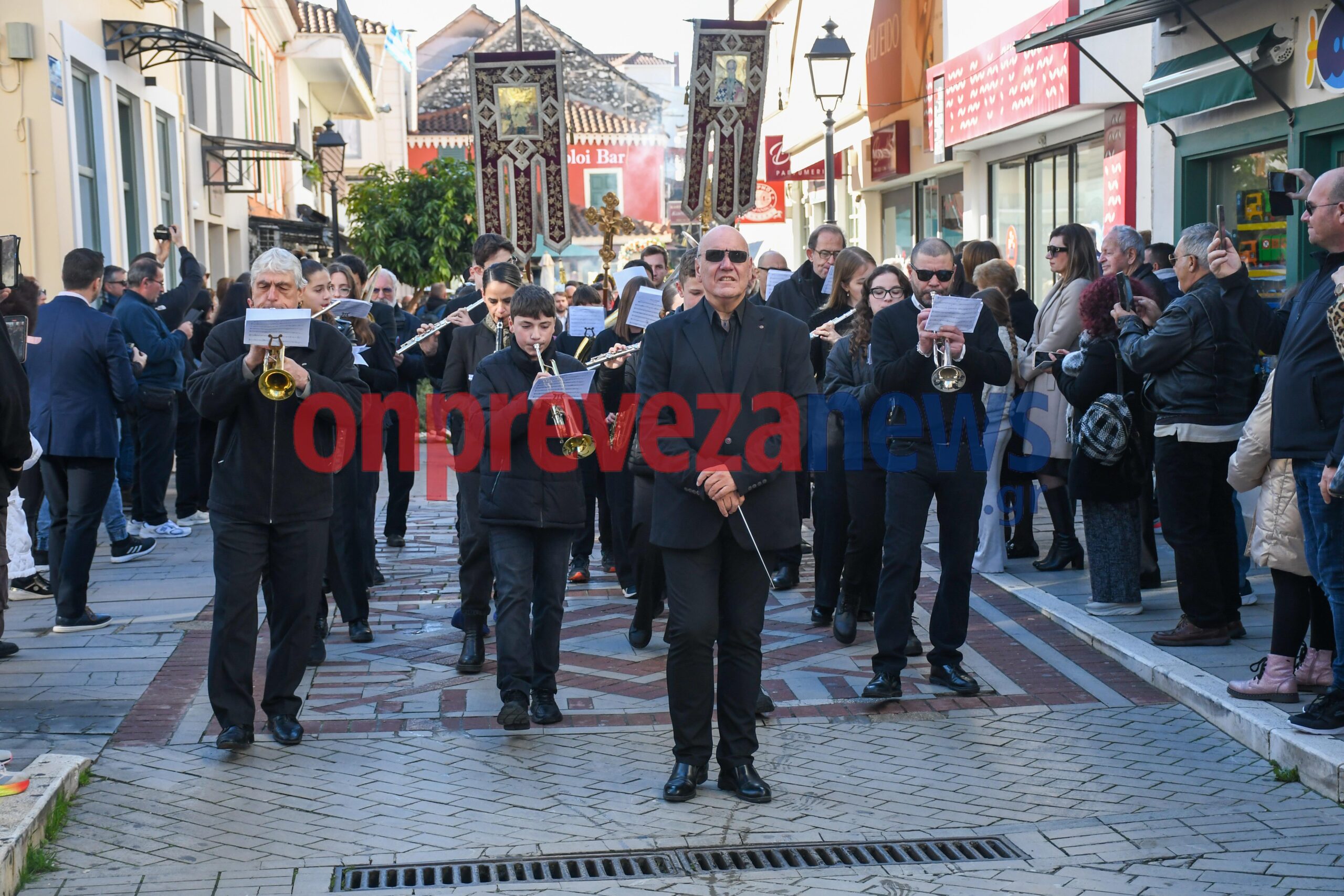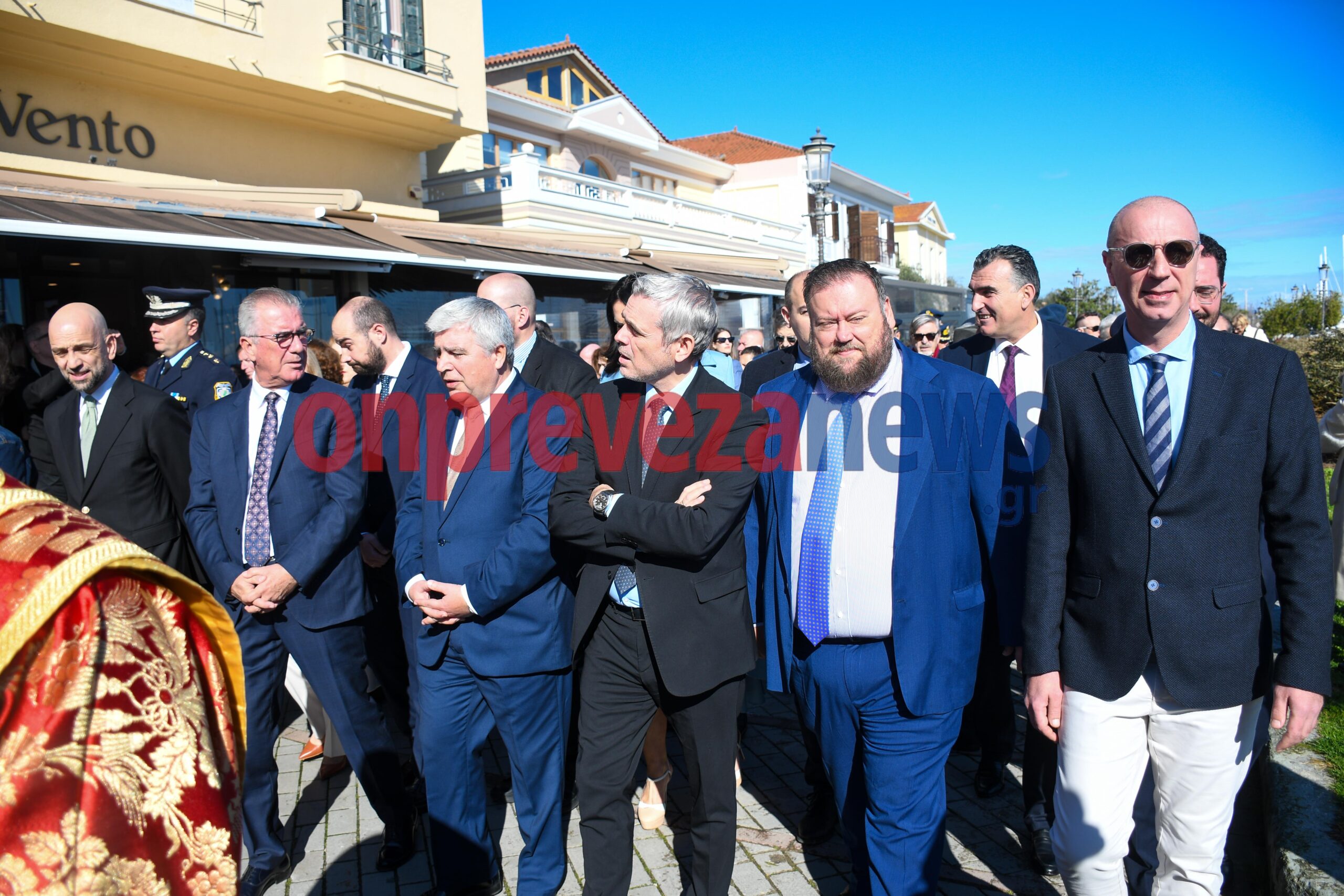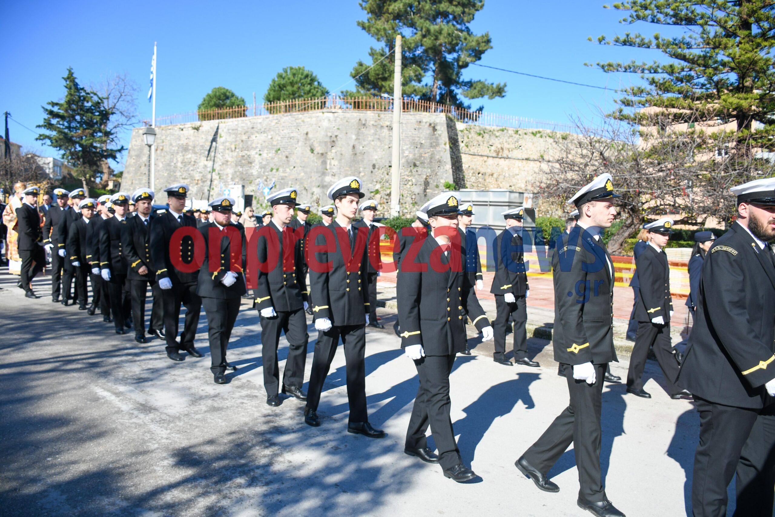 Η φιλαρμονική «Ορφέας» συνόδευσε την πομπή με βυζαντινούς και εμβατηριακούς ήχους, ενώ το χορευτικό τμήμα του Δήμου Πρέβεζας και άγηματα από την Ακαδημία Εμπορικού Ναυτικού και τον Στρατό έδωσαν τον επίσημο, τιμητικό τόνο της ημέρας με την ευθύνη της ασφάλειας να την έχει για ακόμη μια χρονιά η ΛΕΚ Πρέβεζας.