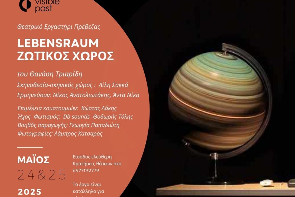 Θεατρικό Εργαστήρι Πρέβεζας «Lebensraum – Ζωτικός Χώρος» του Θανάση Τριαρίδη στις 24 και 25 Μαΐου 2025 | Ώρα έναρξης: 20:30