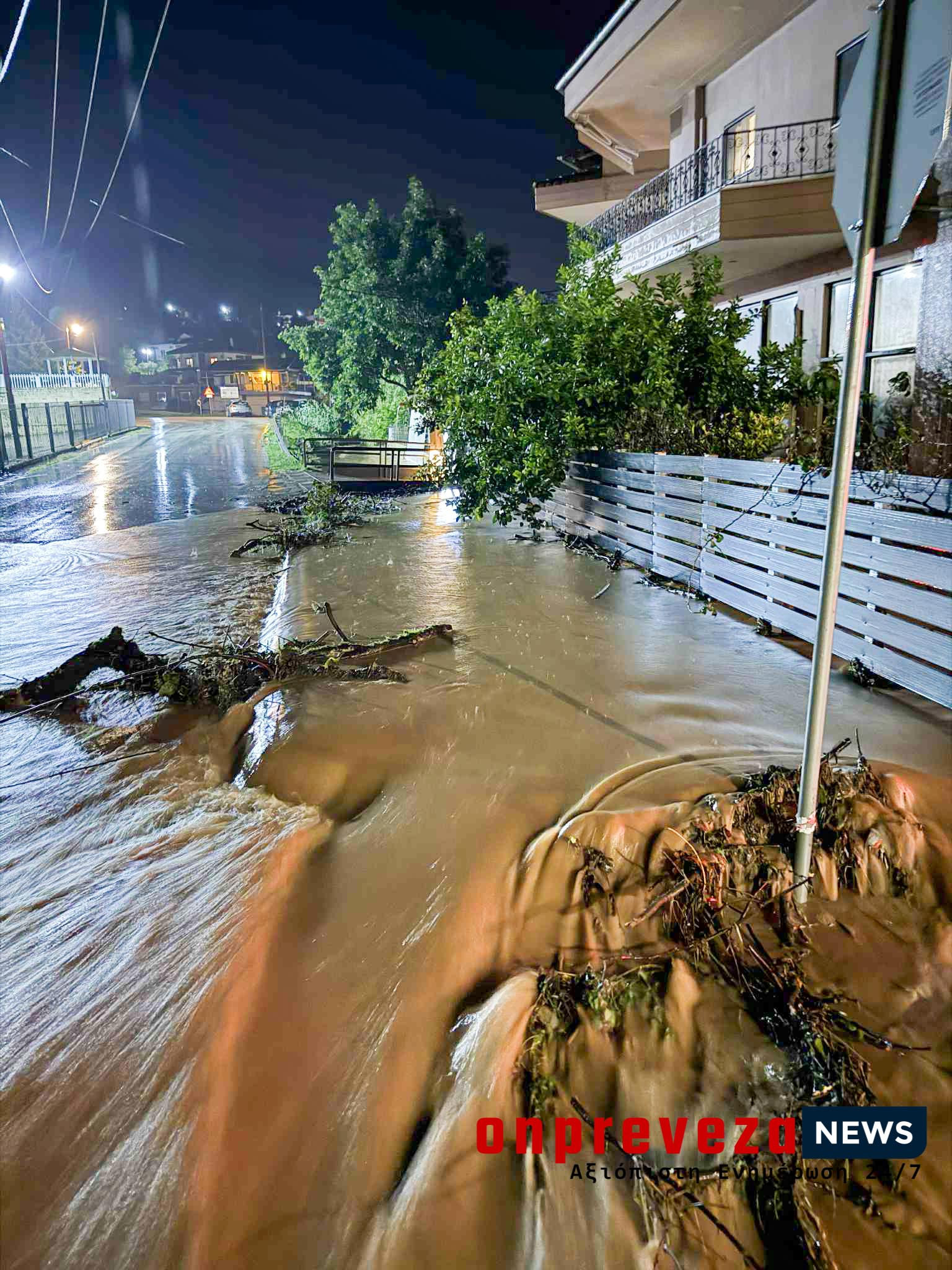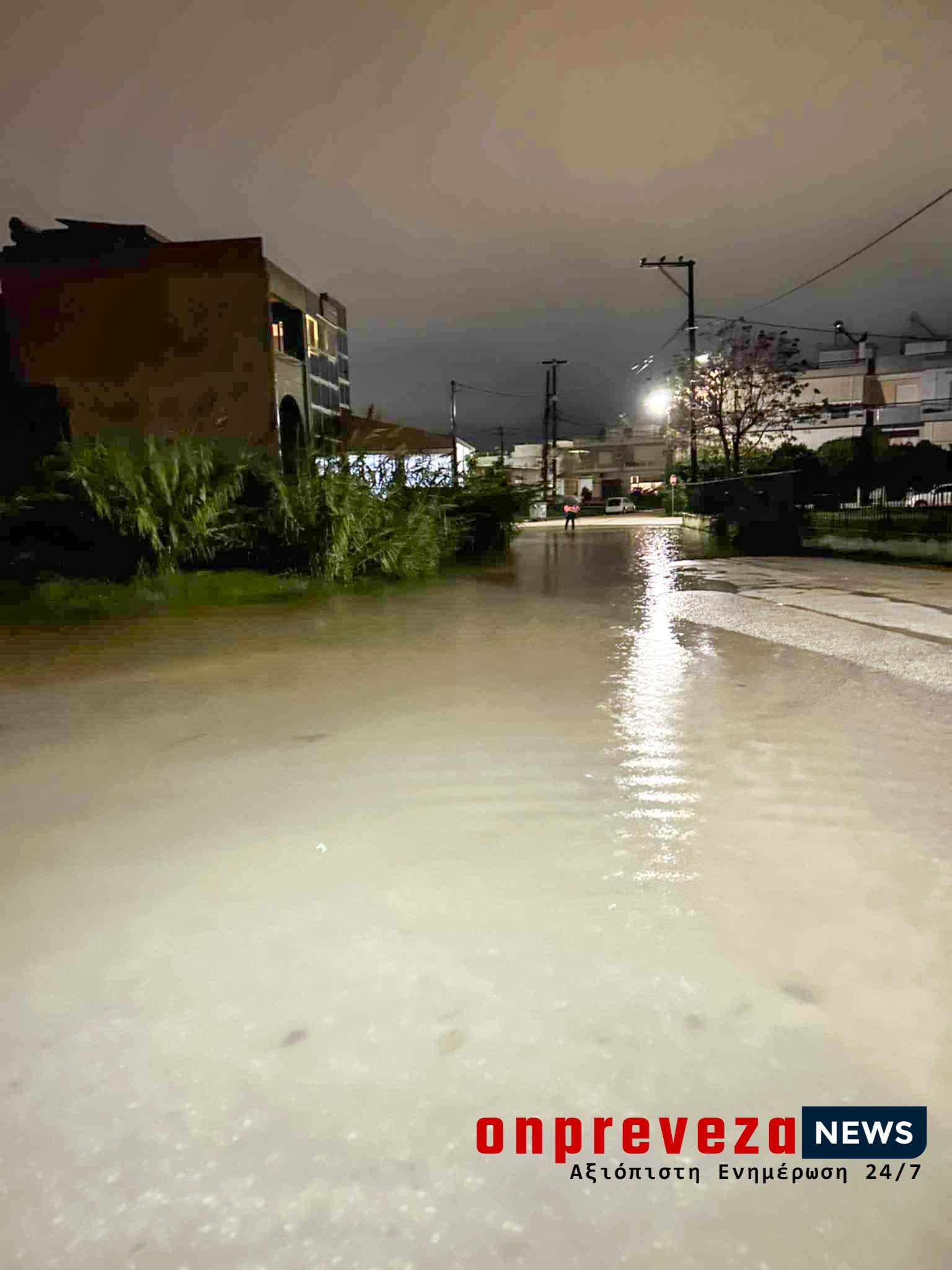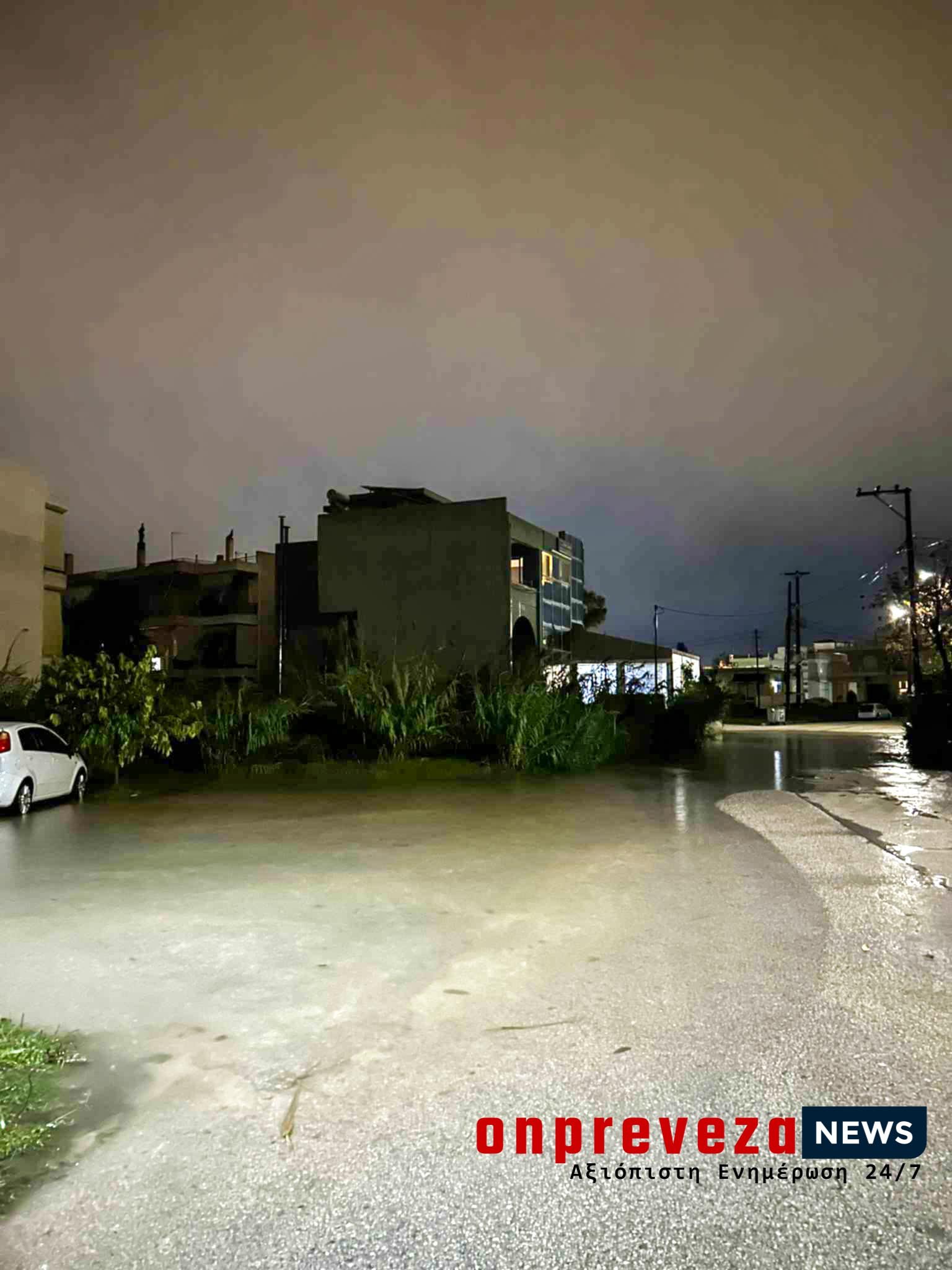 Έντονα καιρικά φαινόμενα με σφοδρή βροχόπτωση και καταιγίδες έπληξαν το βράδυ της Κυριακής τον Νομό Πρέβεζας, προκαλώντας τεράστια προβλήματα σε δρόμους, υπόγεια κατοικιών και επιχειρήσεις. Μέσα σε λίγη ώρα, η κακοκαιρία μετέτρεψε πολλές περιοχές σε λίμνες, ενώ τα φρεάτια αδυνατούσαν να απορροφήσουν τον τεράστιο όγκο νερού, με αποτέλεσμα να αναποδογυρίζουν καπάκια και να πλημμυρίζουν ολόκληρες γειτονιές.