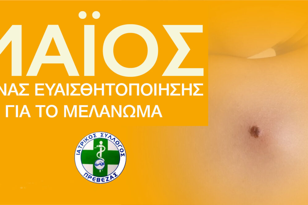 Ο Ιατρικός Σύλλογος Πρέβεζας μαζί με την ΕΔΑΕ (Ελληνική Δερματολογική και Αφροδισιολογική Εταιρεία) συμμετέχει και φέτος στην παγκόσμια εκστρατεία ευαισθητοποίησης για το μελάνωμα, τον καρκίνο του δέρματος που μπορεί να προληφθεί και να αντιμετωπιστεί αποτελεσματικά όταν διαγνωστεί έγκαιρα. Ο Μάιος, ως μήνας αφιερωμένος στην ενημέρωση και την πρόληψη, αποτελεί την κατάλληλη ευκαιρία για να υπενθυμίσουμε τη σημασία της προστασίας από την ηλιακή ακτινοβολία και της τακτικής εξέτασης του δέρματος.