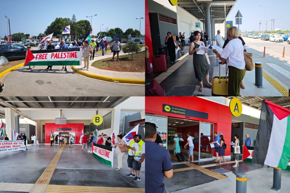 Η διαμαρτυρία για τα ισραηλινά εγκλήματα, με τις πλάτες των ΗΠΑ – ΝΑΤΟ – ΕΕ αλλά και της ενεργό εμπλοκή της Ελλάδας, έγινε στο αεροδρόμιο του Ακτίου, για να μεταφέρει στους επισκέπτες τα αισθήματα του λαού της Πρέβεζας και της Λευκάδας.