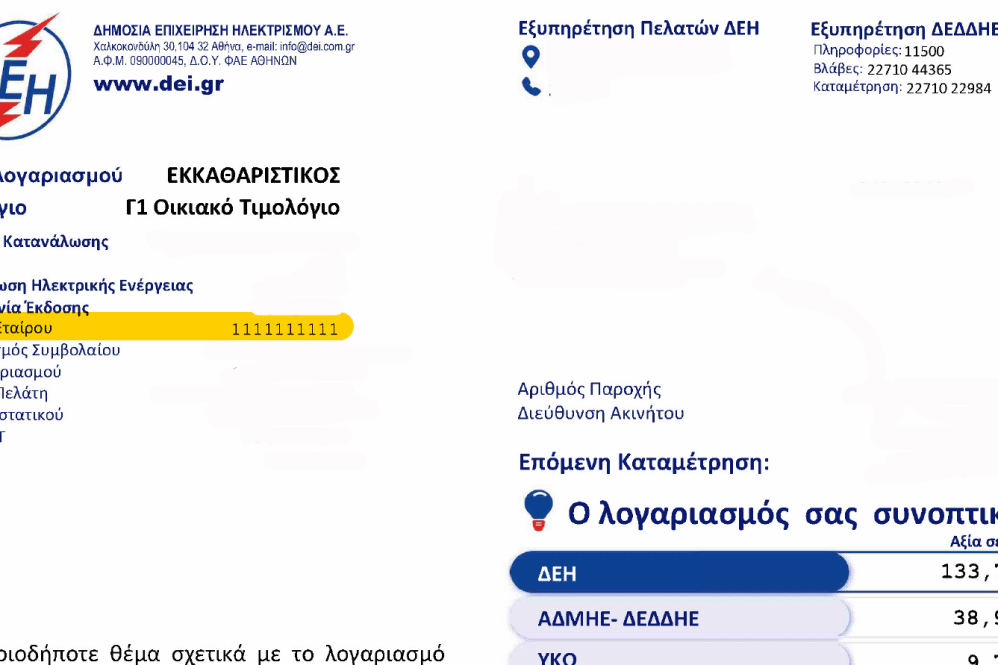 Για 13 ημέρες και κατανάλωση 408Kwh πληρώνει: