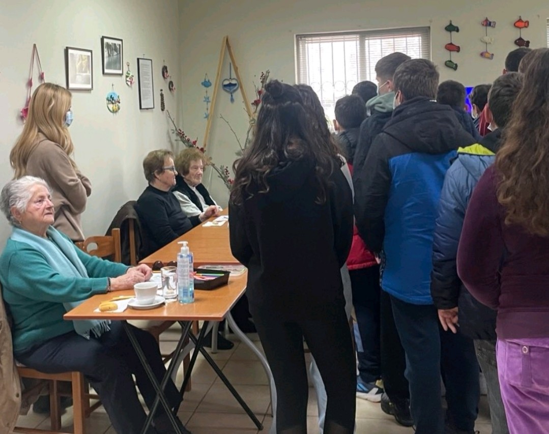 Οι μαθητές και μαθήτριες ενημερώθηκαν για τον τρόπο λειτουργίας της δομής ξεναγήθηκαν στον χώρο,τους δόθηκε ενημερωτικό υλικό,συνομίλησαν με τους ωφελούμενους και το προσωπικό  του Κ.Η.Φ.Η. κέρασαν όλους  τους παραβρισκόμενους ” κυδωνόπαστο” ,ένα γλυκό που παρασκευάζονταν από αρχαιοτάτους χρόνους  και τραγούδησαν , μαζί με την ομάδα χορωδίας των ηλικιωμένων.
