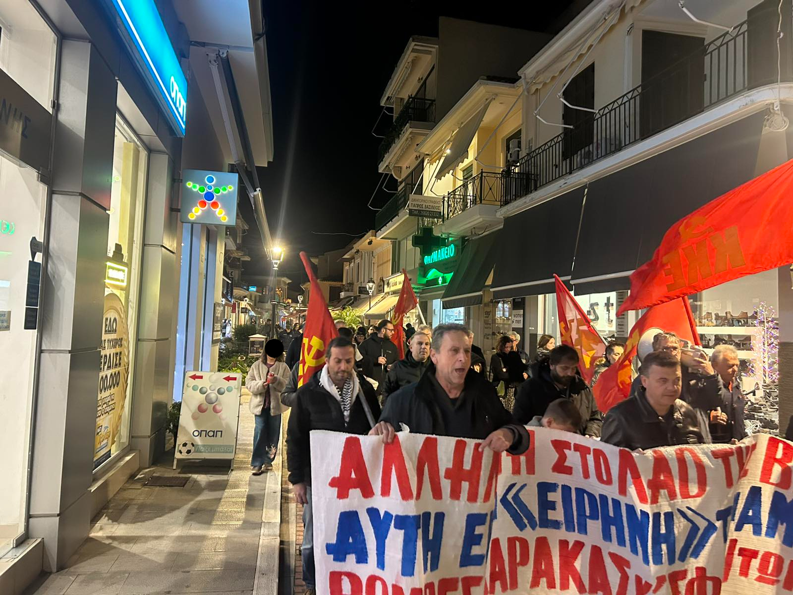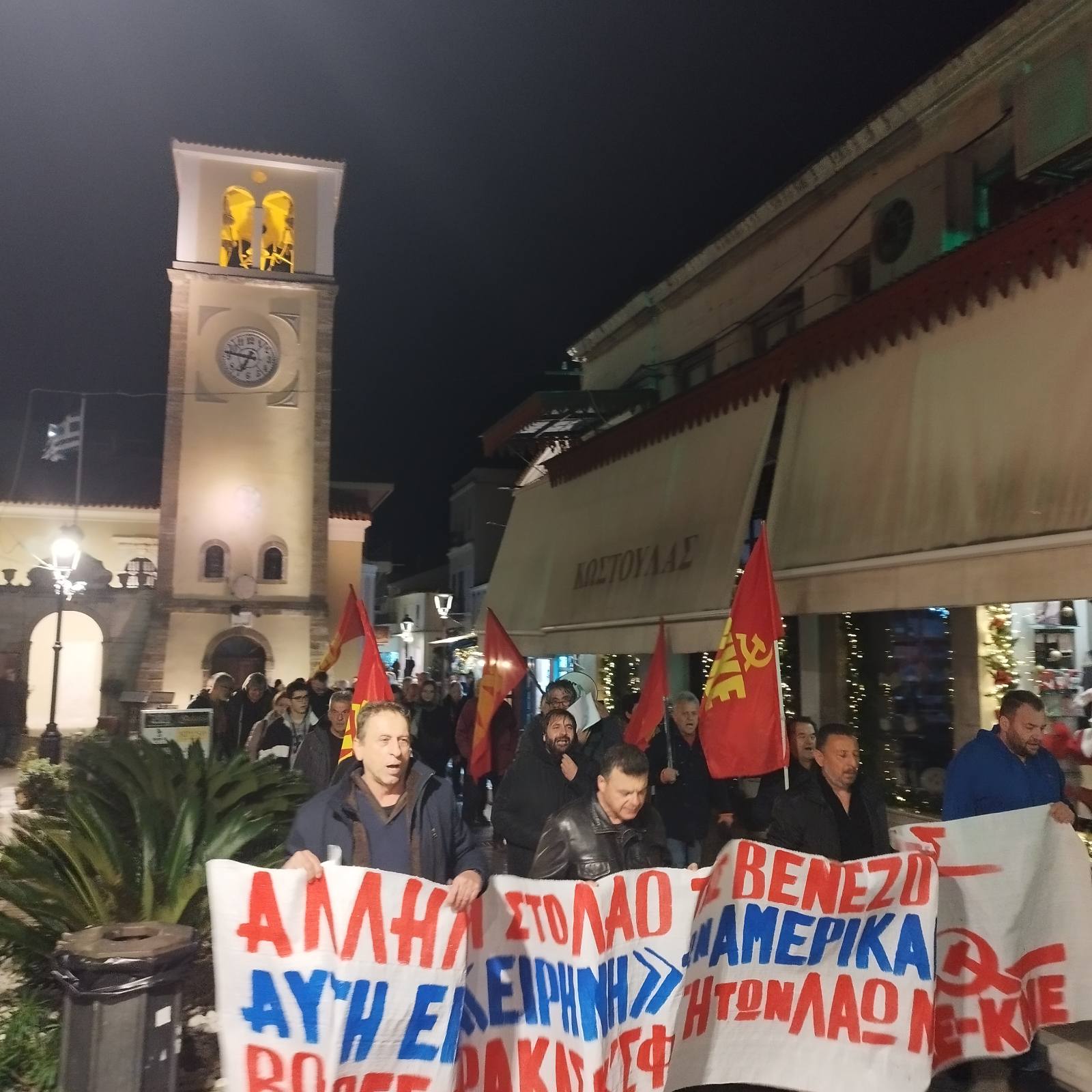 Καταδίκασαν το ιμπεριαλιστικό αιματοκύλισμα βροντοφωνάζοντας ”Τις βόμβες τις ρίχνει ο ιμπεριαλισμός, κοράκι του πολέμου ο ειρηνοποιός” και κάλεσαν τους φορείς και τον Λαό της πόλης να είναι σε αγωνιστική επαγρύπνηση για να απαντήσουμε ξανά, αν χρειαστεί, στο μπουρλότο που έχουν βάλει στην περιοχή ΝΑΤΟ, ΗΠΑ και οι σύμαχοί τους.