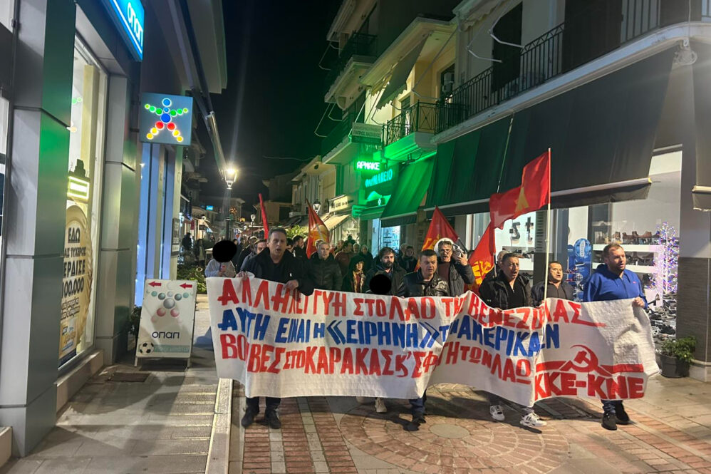Με βασικό σύνθημα ”Αυτή είναι η ‘ειρήνη’ των ιμπεριαλιστών, βόμβες στο Καράκας και σφαγή λαών” πραγματοποιήθηκε χθες στην Πρέβεζα το μαχητικό συλλαλητήριο, στο οποίο είχε καλέσει η Τομεακή Οργάνωση του ΚΚΕ στην Θεοφάνειο.