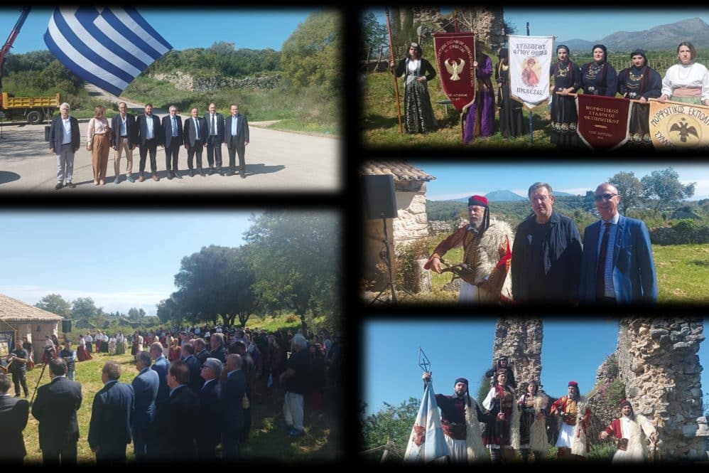 Η εκδήλωση ξεκίνησε με επιμνημόσυνη δέηση και μετά χαιρετισμούς έκαναν ο Δήμαρχος Ζηρού κ. Γιώργος Ζηγουρης, ο Αντιπεριφερειάρχης Εμπορίου κ. Τάσος Δράκος, ο πρόεδρος της Εταιρίας Βυζαντινών Μελετών Πρέβεζας κ. Ευάγγελος Κατσίμπρας και ο αντιδήμαρχος Μεσολογγίου που παρευρέθηκε.