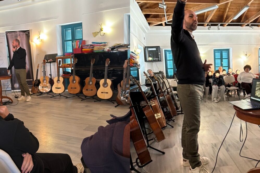 Προσκεκλημένος της εκδήλωσης ήταν ο διακεκριμένος οργανοποιός Γιάννης Σεϊντουλάς, ο οποίος ενθουσίασε το κοινό αναλύοντας τη σύνθετη διαδικασία κατασκευής μιας κλασικής κιθάρας. Μέσα από μια βιωματική προσέγγιση, οι παρευρισκόμενοι παρακολούθησαν τα ποικίλα στάδια της οργανοποιίας, από την αυστηρή επιλογή των πρώτων υλών και τον ρόλο τους στην ακουστική, έως τις λεπτές επεξεργασίες που προσδίδουν στο όργανο την τελική διαμόρφωση της ηχητικής του ταυτότητας.