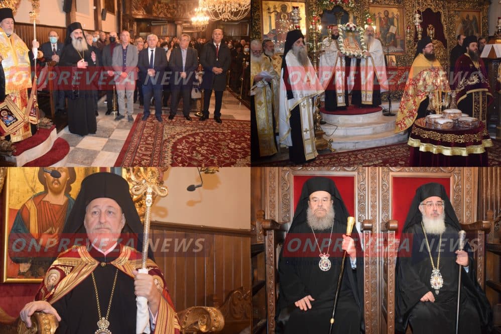 Το παρών έδωσαν ο Σεβασμιότατος Μητροπολίτης Ιερισσού Αγίου Όρους και Αρδαμερίου Θεόκλητος, ο Σεβασμιότατος Μητροπολίτης Νικοπόλεως και Πρεβέζης κ. Χρυσοστόμος, ο δήμαρχος Πρέβεζας Νίκος Γεωργάκος, ο Θεματικός αντιπεριφερειάρχης Ηπείρου Εμπορίου και Απασχόλησης Τάσος Δράκος, οι αντιδήμαρχοι Δ.Ε Ζαλόγγου Γιώργος Σαργιάνογλου και Δ.Ε Λούρου Νίκος Παγγές, ο δημοτικός σύμβουλος Θοδωρής Δράκος, ο πρώην δήμαρχος Πρέβεζας Χρήστος Μπαϊλης, το μέλος της Π.Ε του ΠΑΣΟΚ Παύλος Φραγκούλης, εκπρόσωποι στρατού και σωμάτων ασφαλείας και πλήθος πιστών.