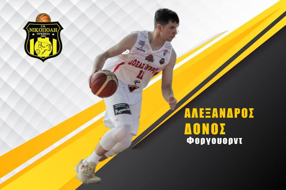 Ο Σύλλογος Καλαθοσφαίρισης «Νικόπολη Πρέβεζας» είναι στην ευχάριστη θέση να ανακοινώσει την πρώτη μεταγραφή για την φετινή χρόνια, τον πρεβεζάνο Αλέξανδρο Δόνο.