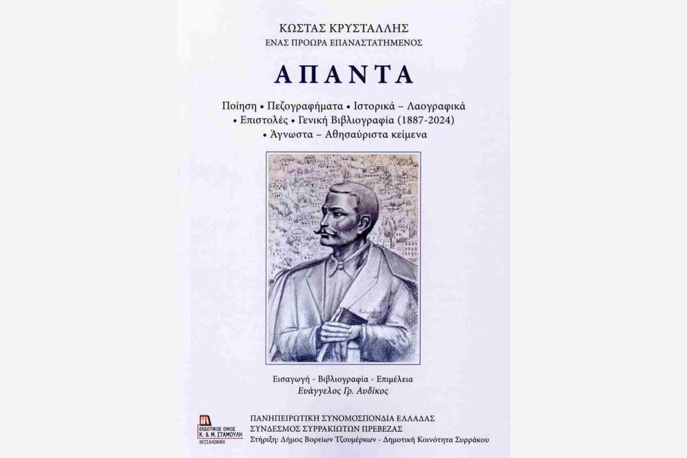 Τον νέο τόμο Απάντων του ποιητή Κώστα Κρυστάλλη παρουσιάζουν για πρώτη φορά στο Συρράκο, ο Δήμος Βορείων Τζουμέρκων με τη Δημοτική Κοινότητα Συρράκου, με συνδιοργανωτές τον Σύνδεσμο Συρρακιωτών Πρέβεζας,  το Θερινό Σχολείο Τζουμέρκων και ΝΑ Πίνδου και τον Εκδοτικό Οίκο  Κ. & Μ. Σταμούλη.