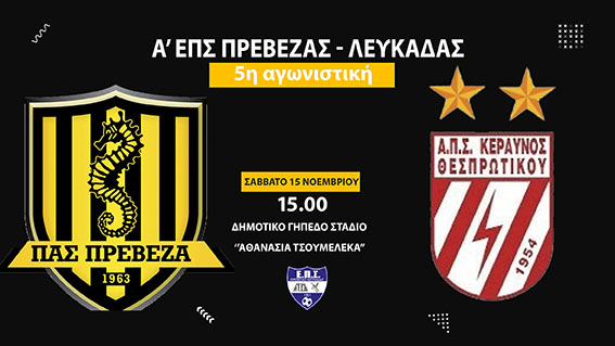 Ο ΠΑΣ Πρέβεζα επιστρέφει και πάλι στο «σπίτι» του, το Δημοτικό Στάδιο Πρέβεζας «Αθανασία Τσουμελέκα», εκεί όπου το Σάββατο 15 Νοεμβρίου στις 15:00 θα υποδεχθεί τον Κεραυνό Θεσπρωτικού, στο πλαίσιο της 5ης αγωνιστικής του πρωταθλήματος της Α’ Κατηγορίας ΕΠΣ Πρέβεζας – Λευκάδας.