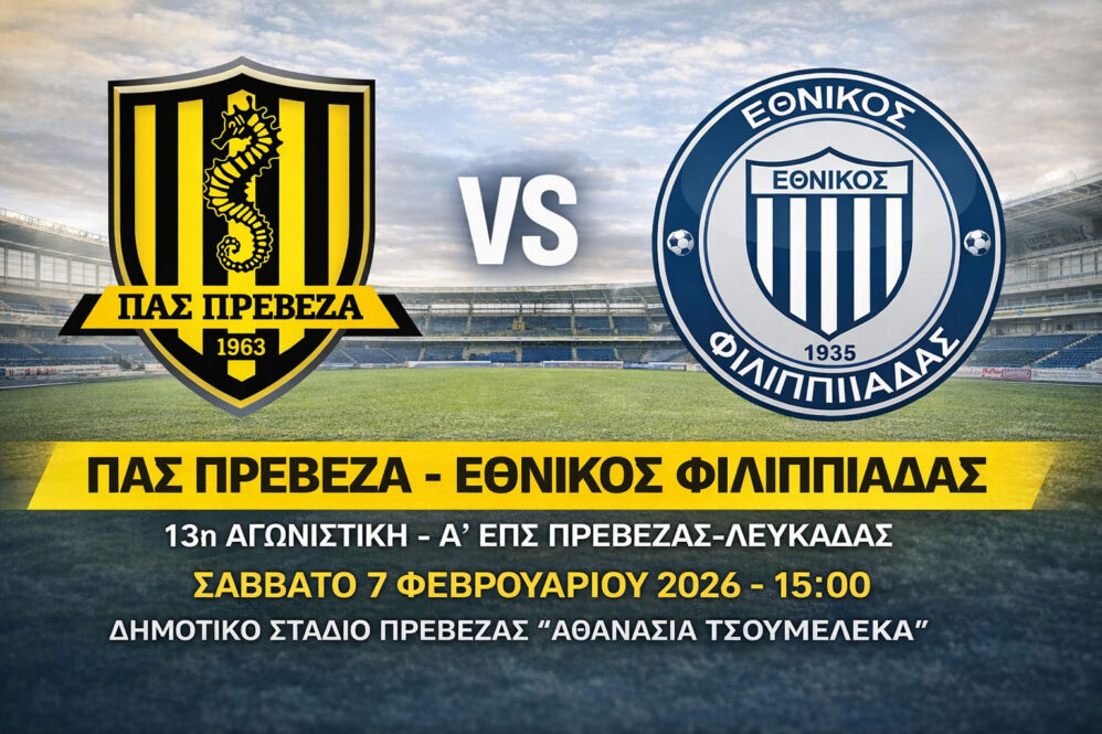 Ο ΠΑΣ Πρέβεζα υποδέχεται τον Εθνικό Φιλιππιάδας στο Δημοτικό Στάδιο Πρέβεζας «Αθανασία Τσουμελέκα», στο πλαίσιο της 13ης αγωνιστικής του πρωταθλήματος της Α’ Κατηγορίας ΕΠΣ Πρέβεζας–Λευκάδας, σε ένα παιχνίδι με ξεχωριστή βαθμολογική και αγωνιστική σημασία.