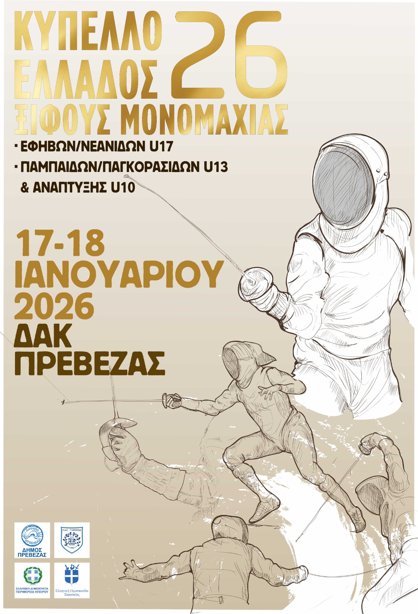 Με μεγάλο ενθουσιασμό ο ΠΑΣ ΓΙΑΝΝΙΝΑ θα διοργανώσει το Σαββατοκύριακο 17 και 18 Ιανουαρίου 2026 αγώνες ξιφασκίας στην όμορφη Πρέβεζα. Οι αγώνες θα διεξαχθούν στο κλειστό γυμναστήριο του ΔΑΚ Πρέβεζας και θα συμμετέχουν παιδιά ηλικιών 7 ως 17 ετών από όλη την Ελλάδα με τις συμμετοχές να αναμένεται να ξεπεράσουν τις 250.