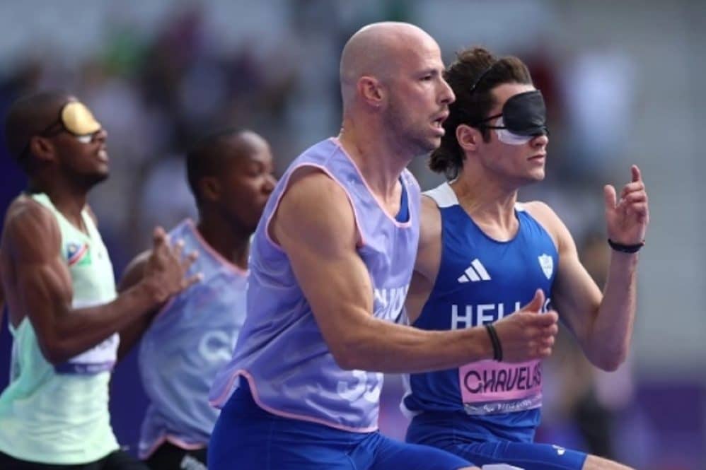 Ο Νάσος Γκαβέλας με οδηγό τον αθλητή του ΓΣ Ελευθέριος Βενιζέλος, Γιάννη Νυφαντόπουλο, προκρίθηκε με τον καλύτερο χρόνο στον τελικό των 100 μέτρων Τ11 στους Παραολυμπιακούς Αγώνες στο Παρίσι.