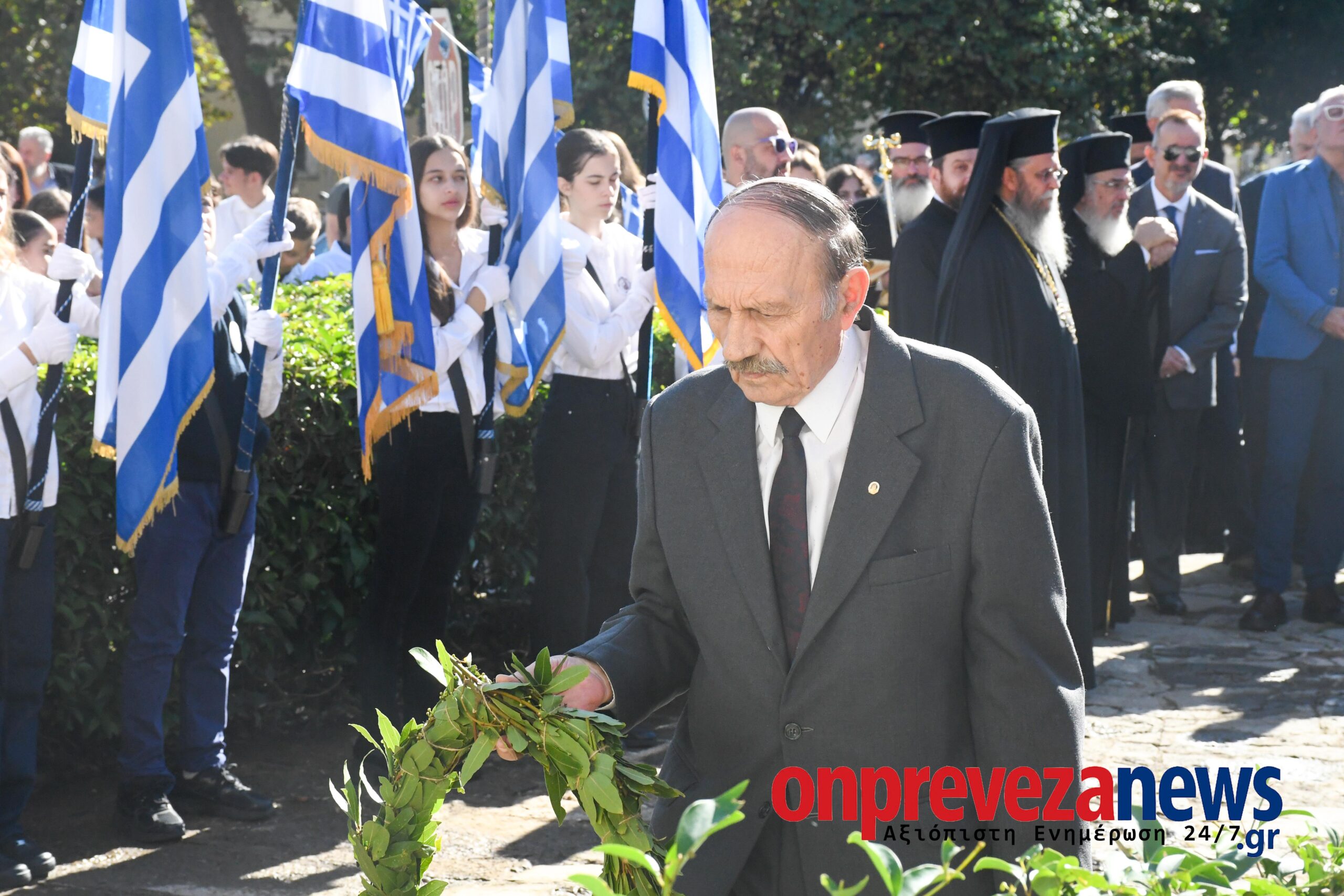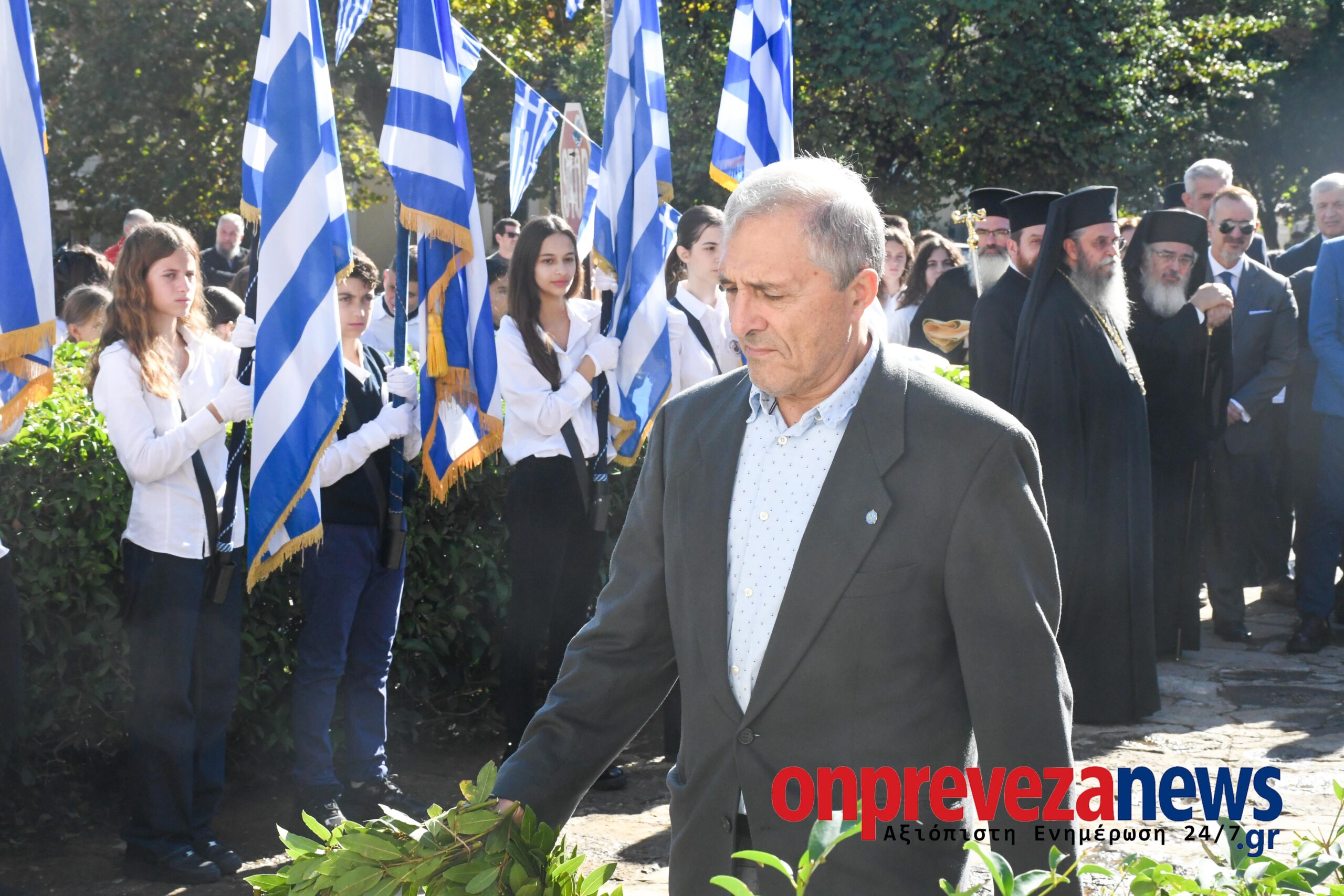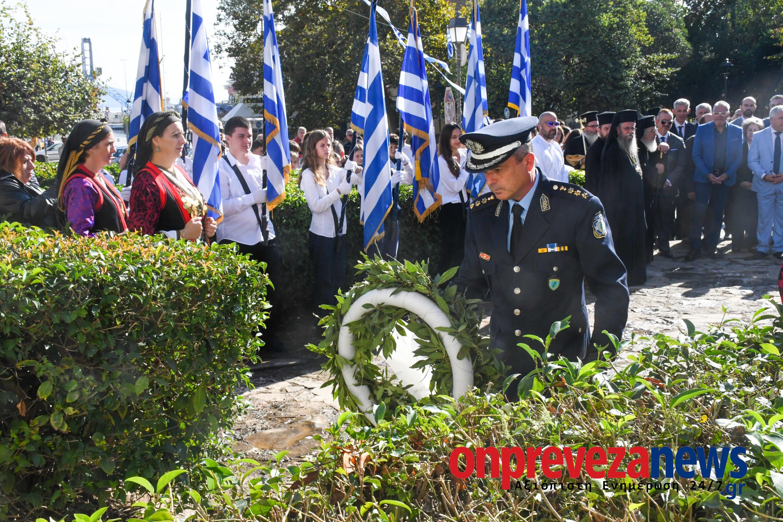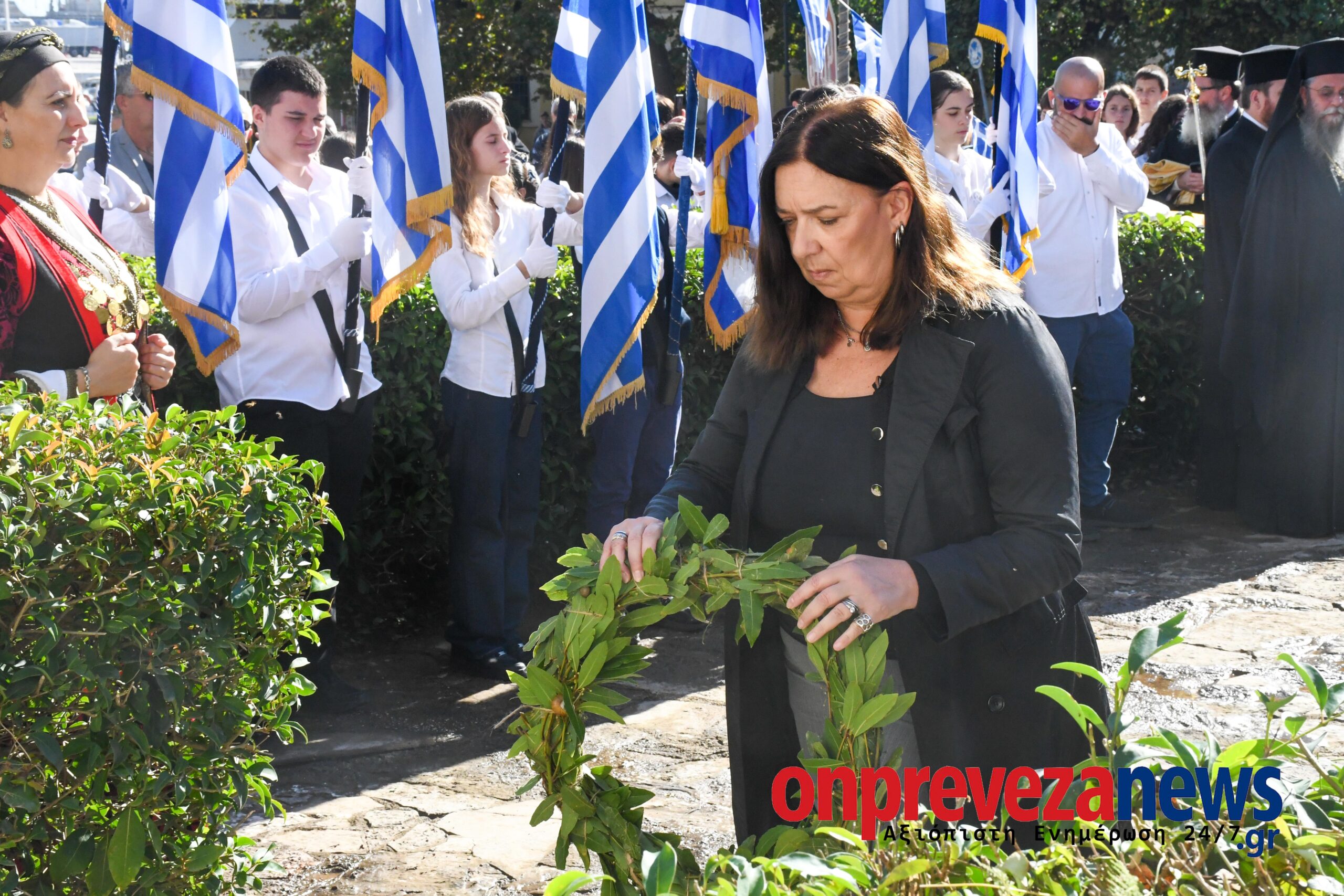 Οι εκδηλώσεις κορυφώθηκαν με την τελετή κατάθεσης στεφάνων στο Ηρώο της Πρέβεζας, παρουσία των τοπικών αρχών, εκπροσώπων της κυβέρνησης, των σωμάτων ασφαλείας, των Ενόπλων Δυνάμεων, συλλόγων και μαθητών των σχολείων της πόλης.