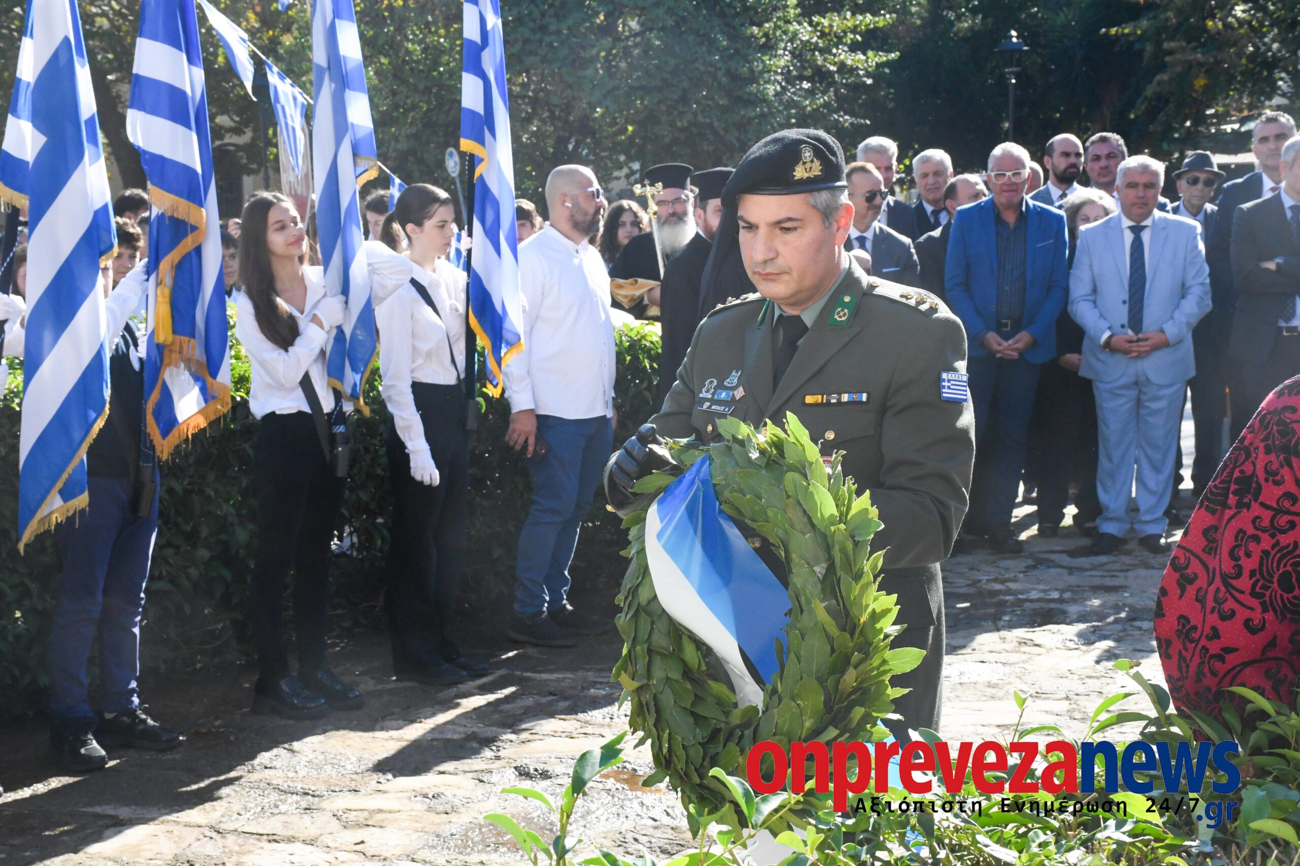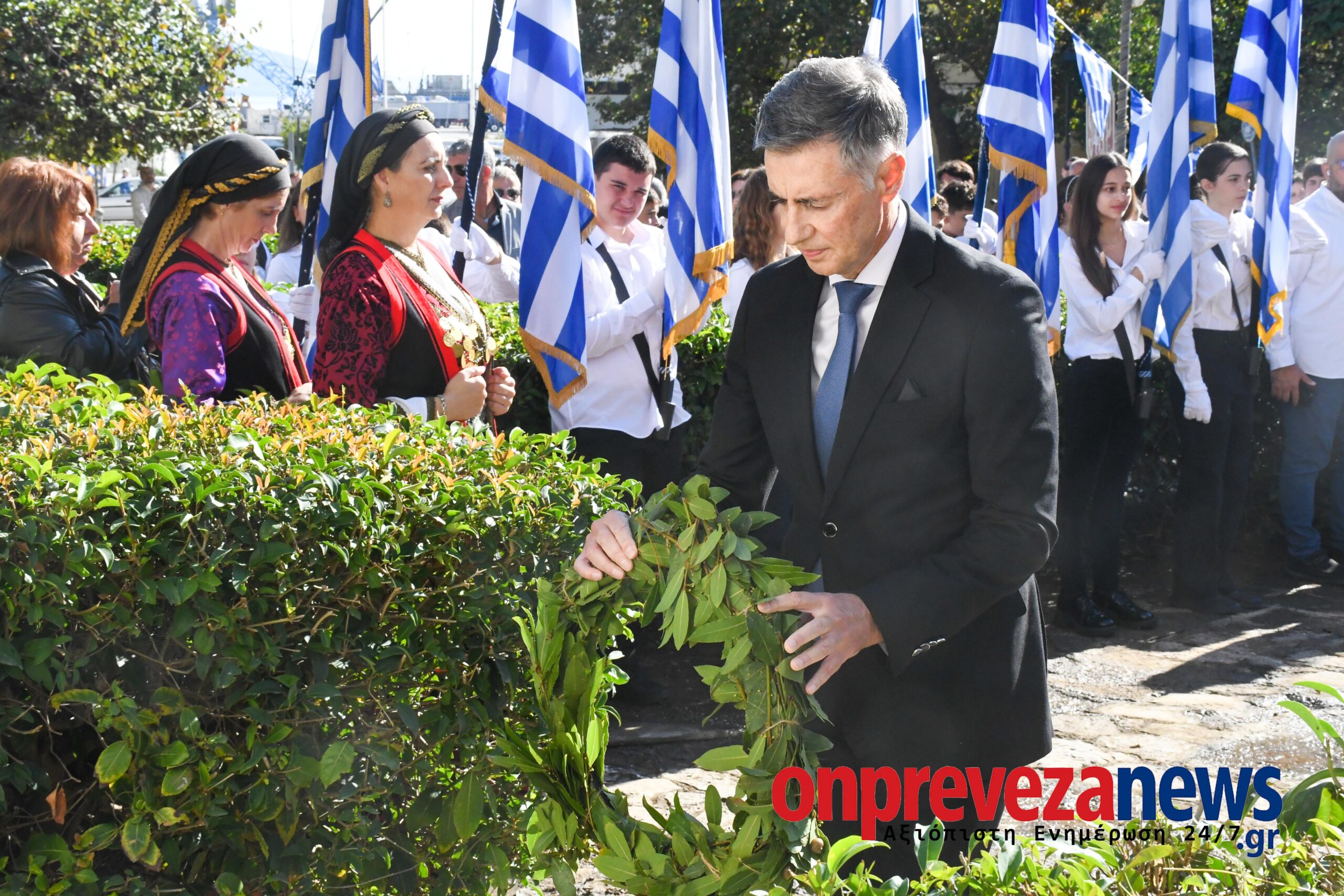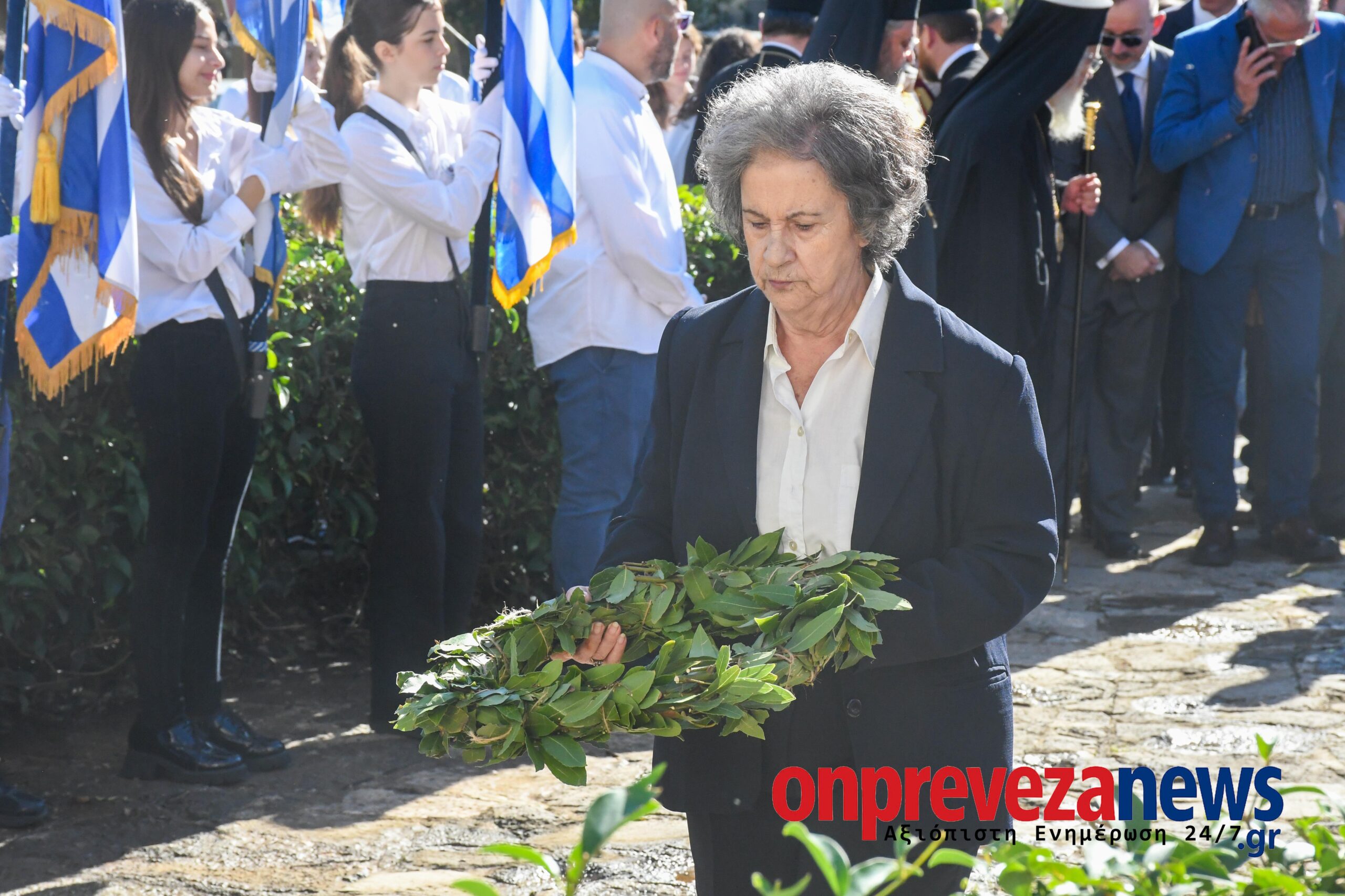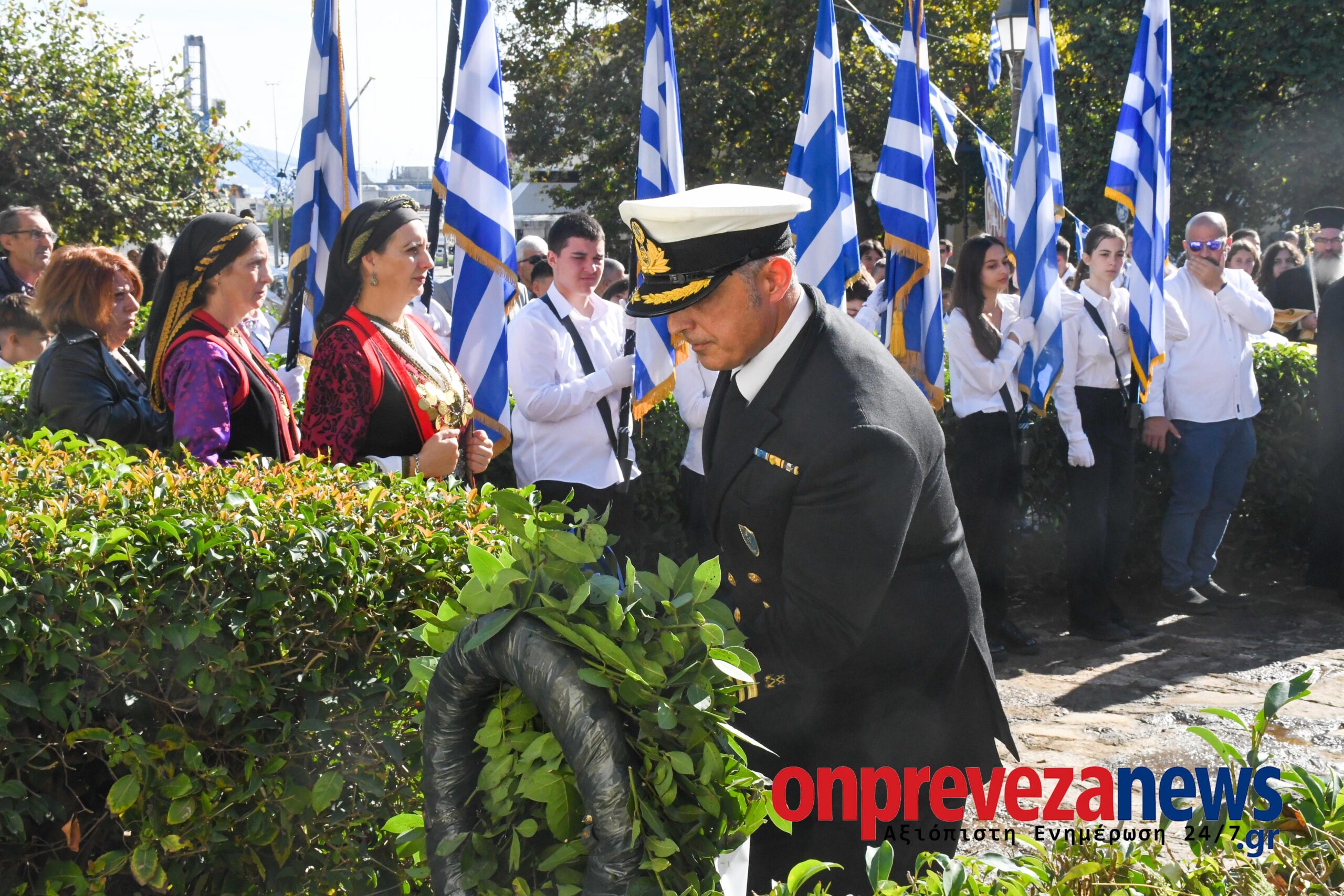 Οι εκδηλώσεις κορυφώθηκαν με την τελετή κατάθεσης στεφάνων στο Ηρώο της Πρέβεζας, παρουσία των τοπικών αρχών, εκπροσώπων της κυβέρνησης, των σωμάτων ασφαλείας, των Ενόπλων Δυνάμεων, συλλόγων και μαθητών των σχολείων της πόλης.