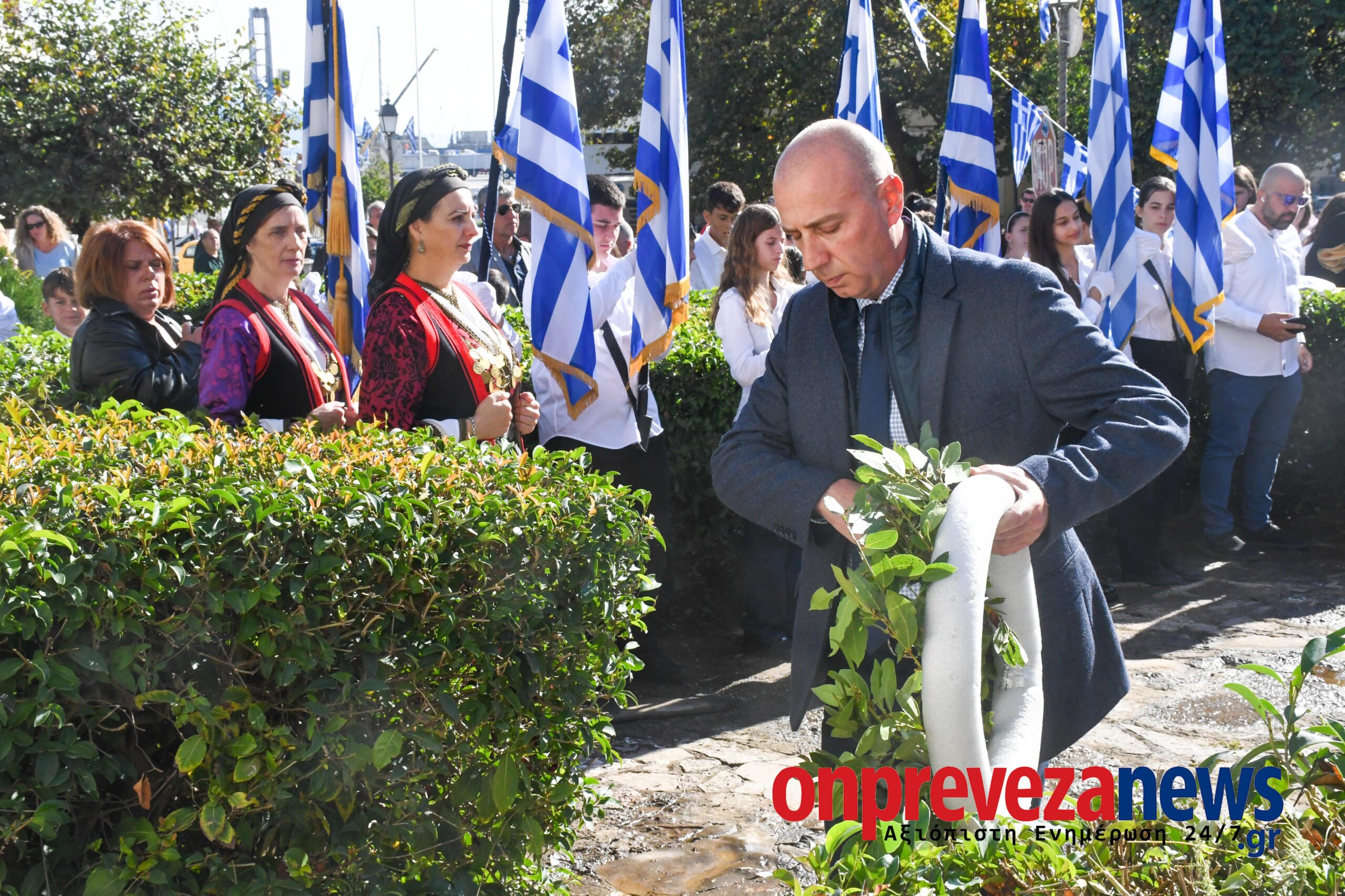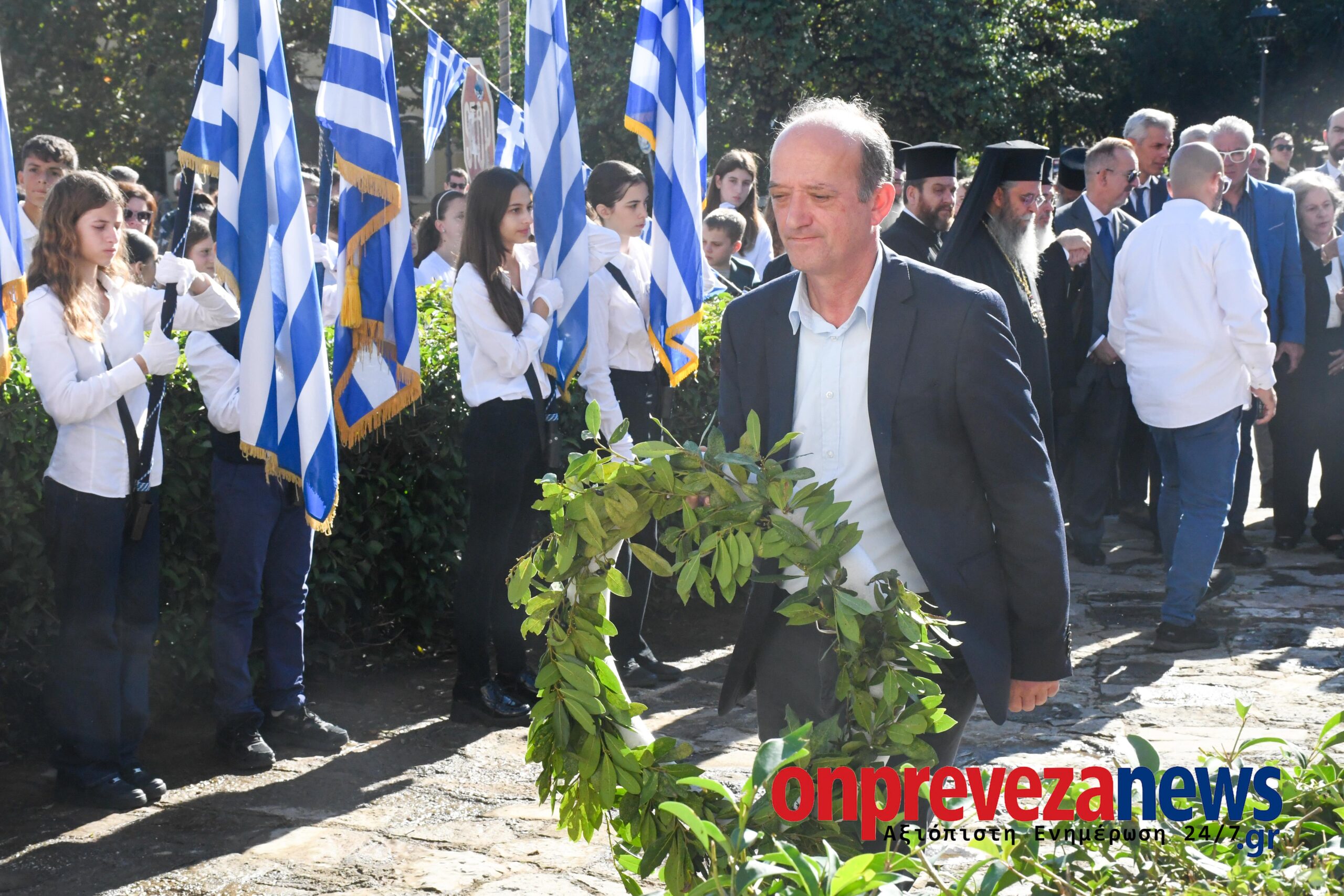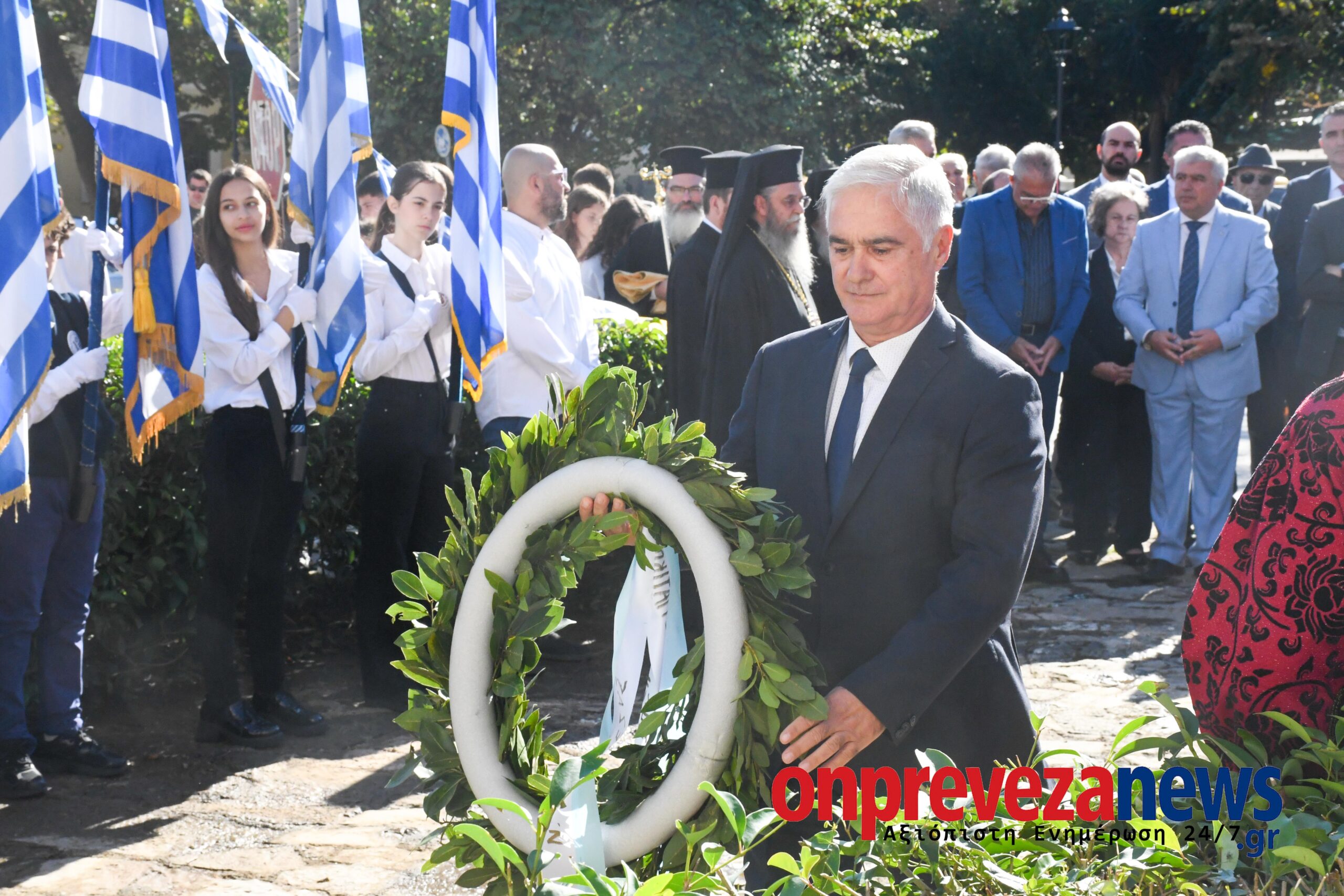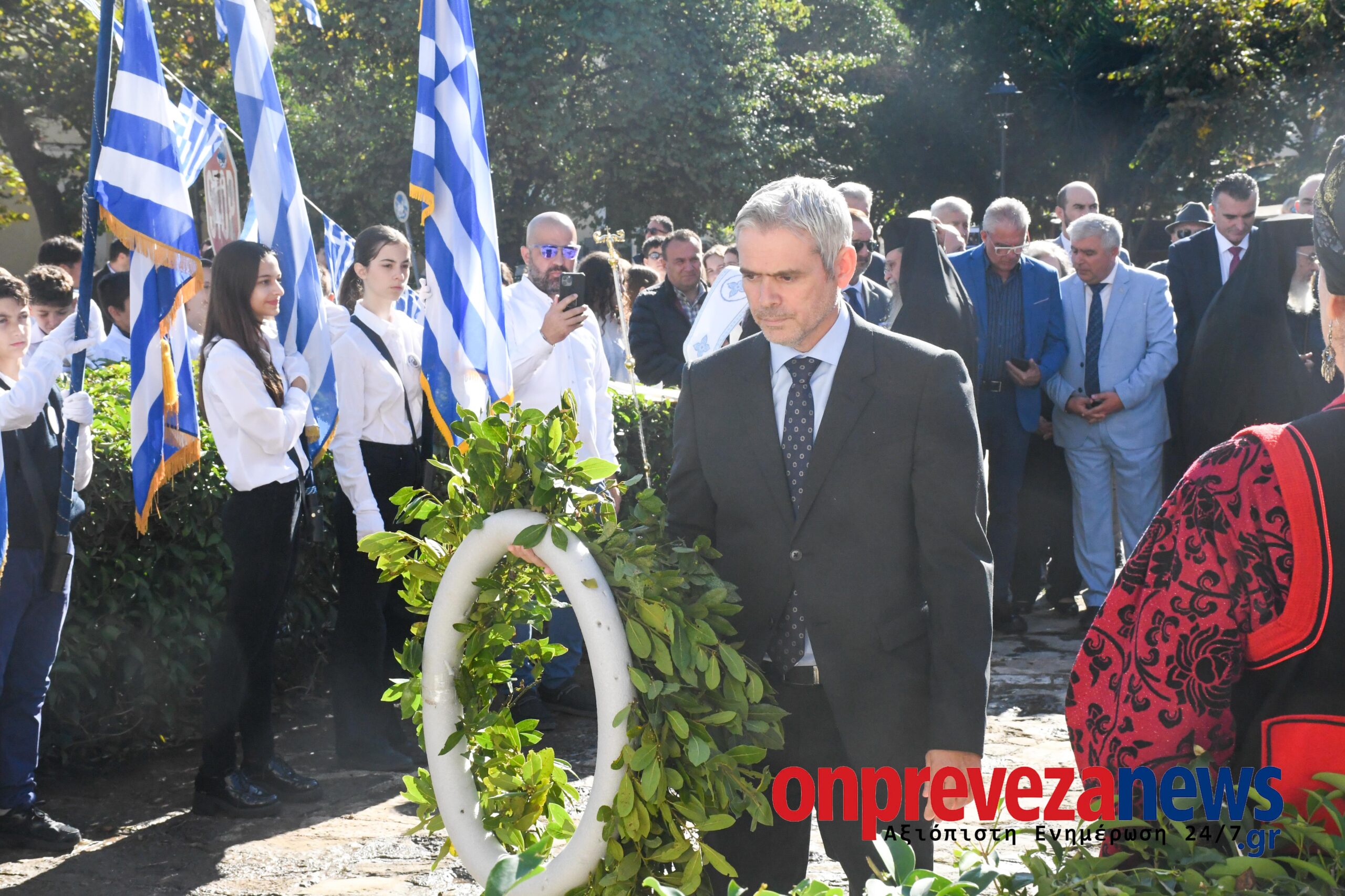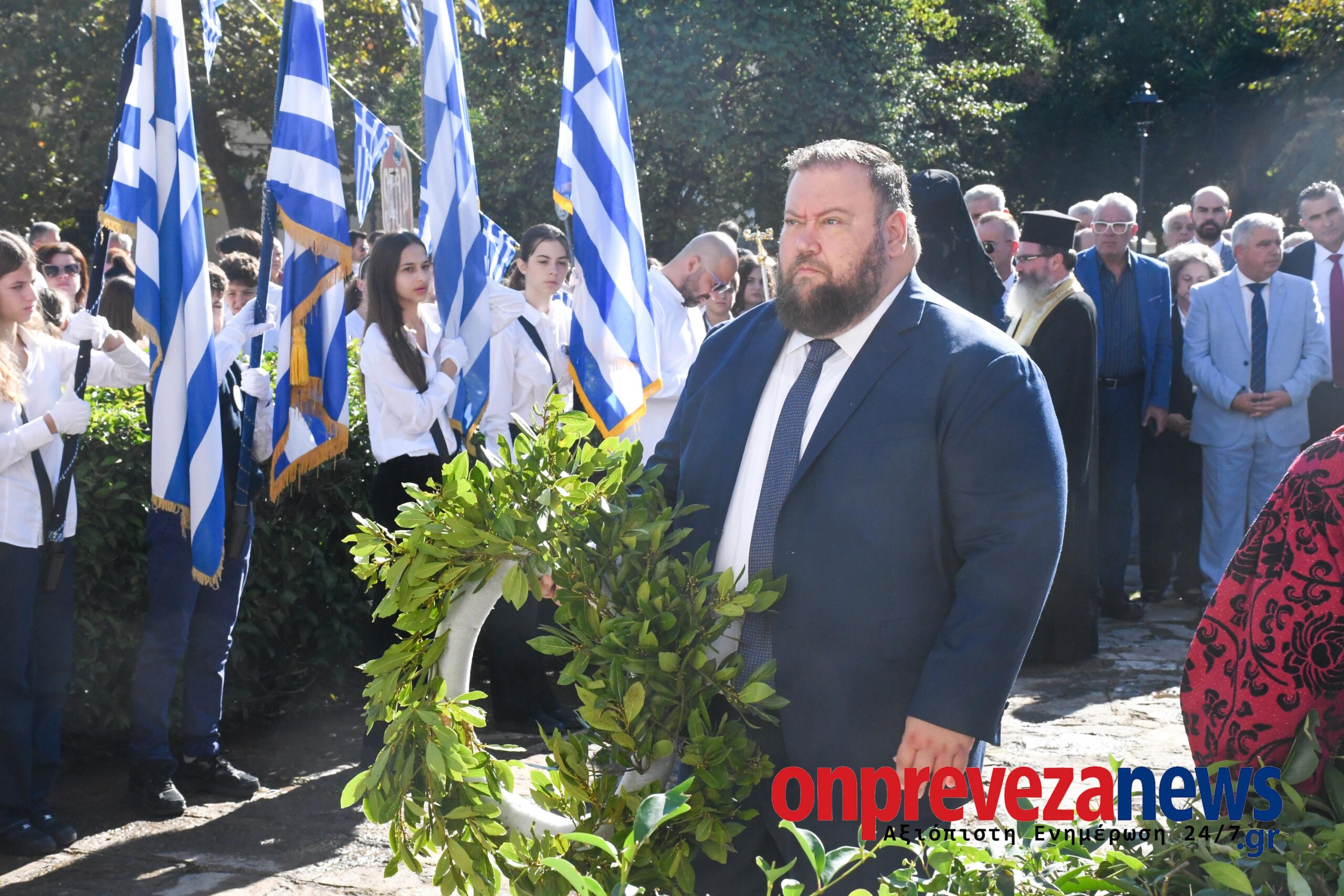 Οι εκδηλώσεις κορυφώθηκαν με την τελετή κατάθεσης στεφάνων στο Ηρώο της Πρέβεζας, παρουσία των τοπικών αρχών, εκπροσώπων της κυβέρνησης, των σωμάτων ασφαλείας, των Ενόπλων Δυνάμεων, συλλόγων και μαθητών των σχολείων της πόλης.