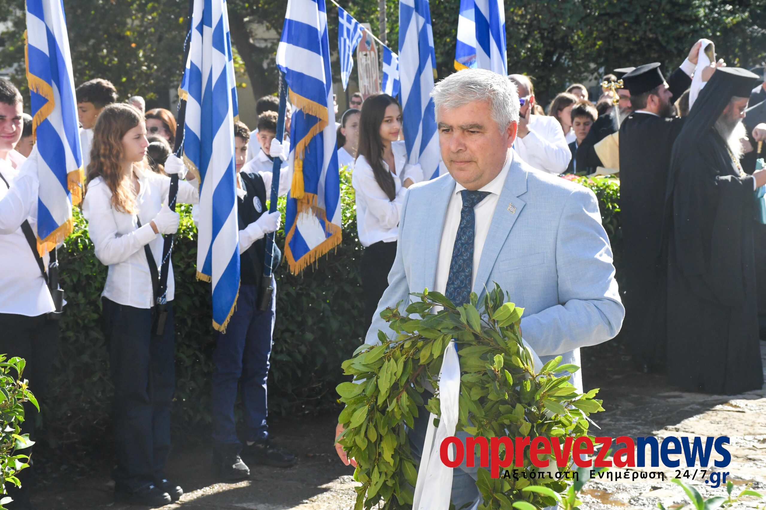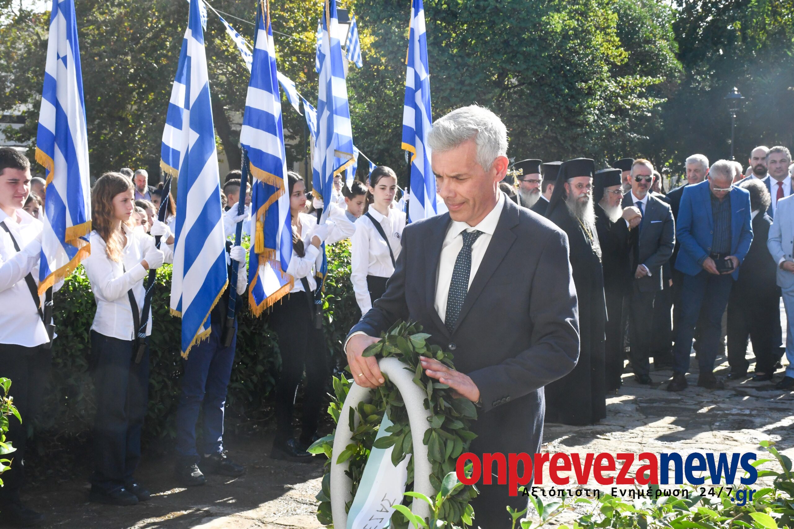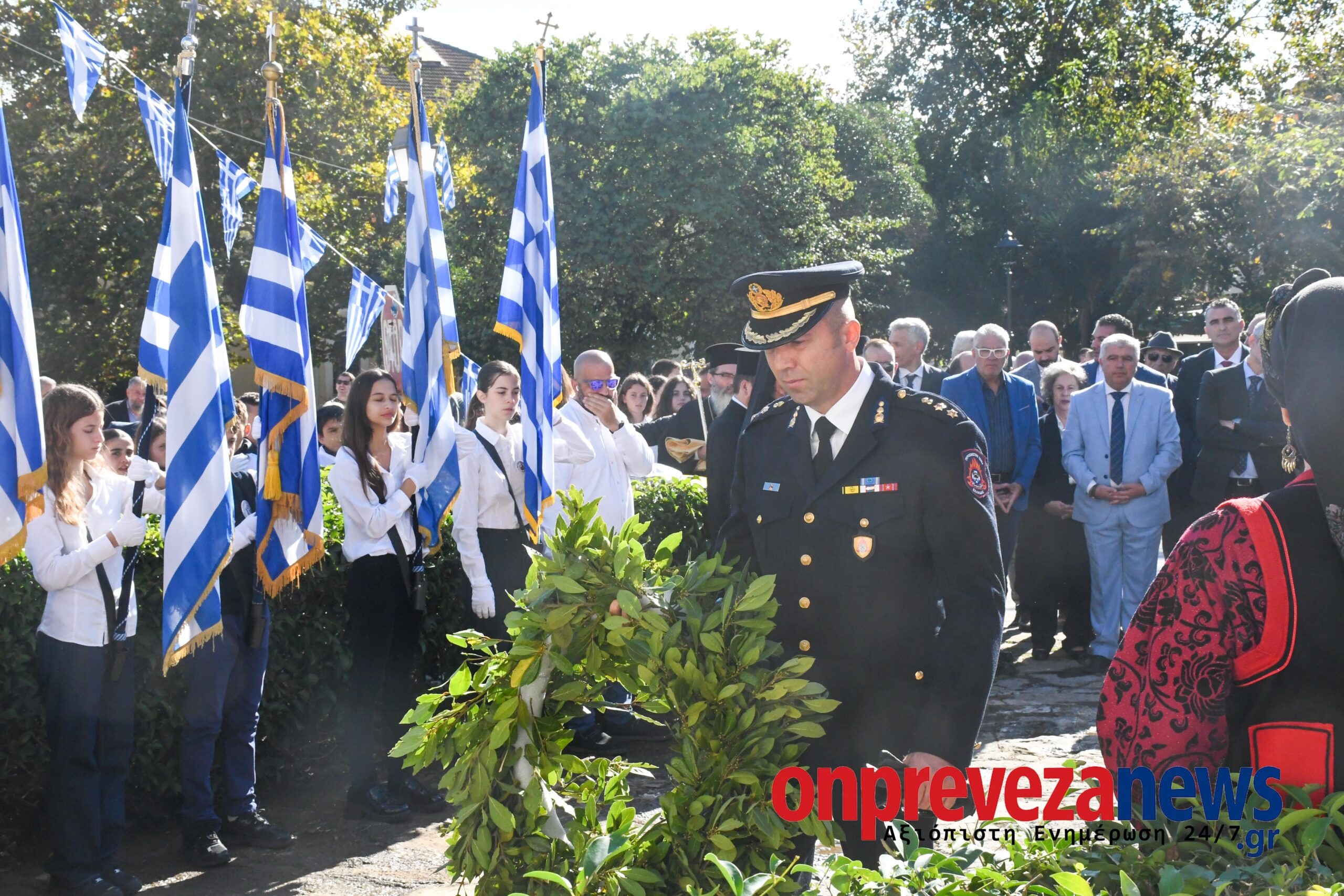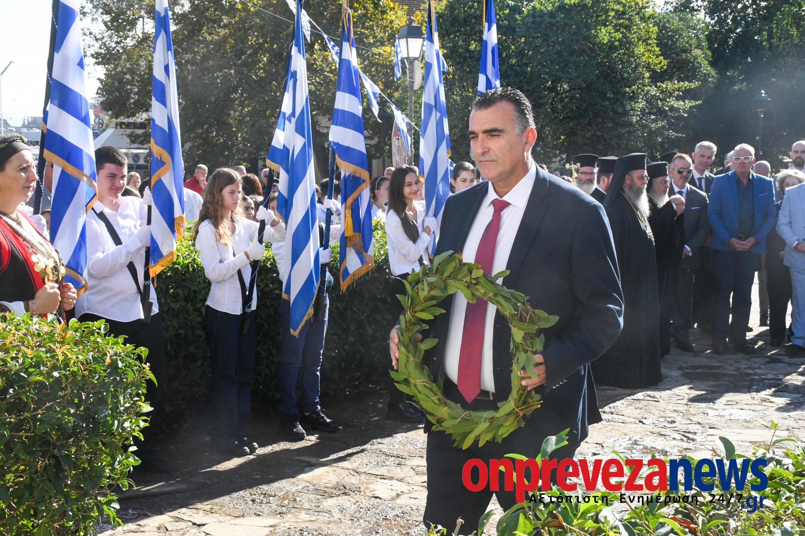 Οι εκδηλώσεις κορυφώθηκαν με την τελετή κατάθεσης στεφάνων στο Ηρώο της Πρέβεζας, παρουσία των τοπικών αρχών, εκπροσώπων της κυβέρνησης, των σωμάτων ασφαλείας, των Ενόπλων Δυνάμεων, συλλόγων και μαθητών των σχολείων της πόλης.