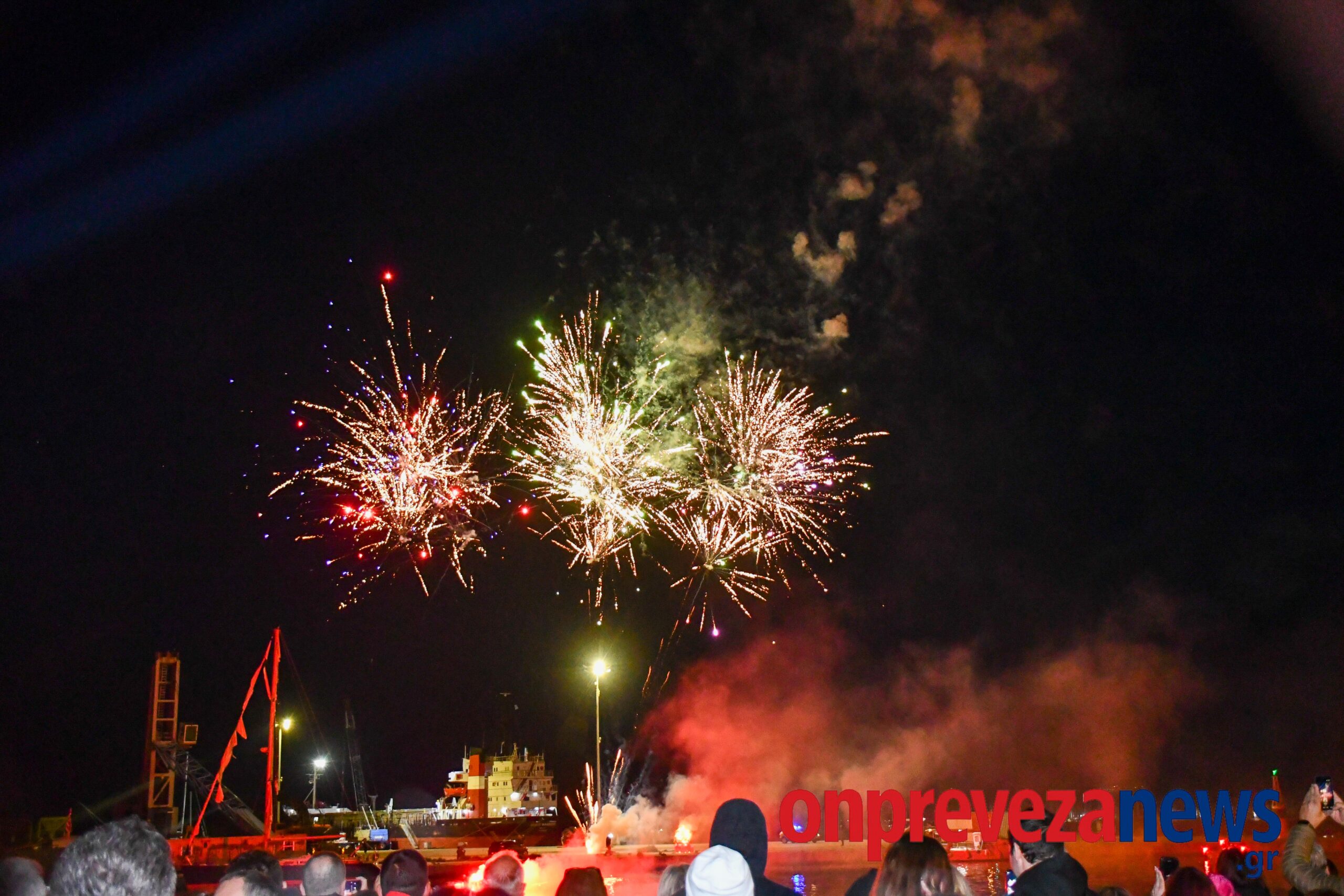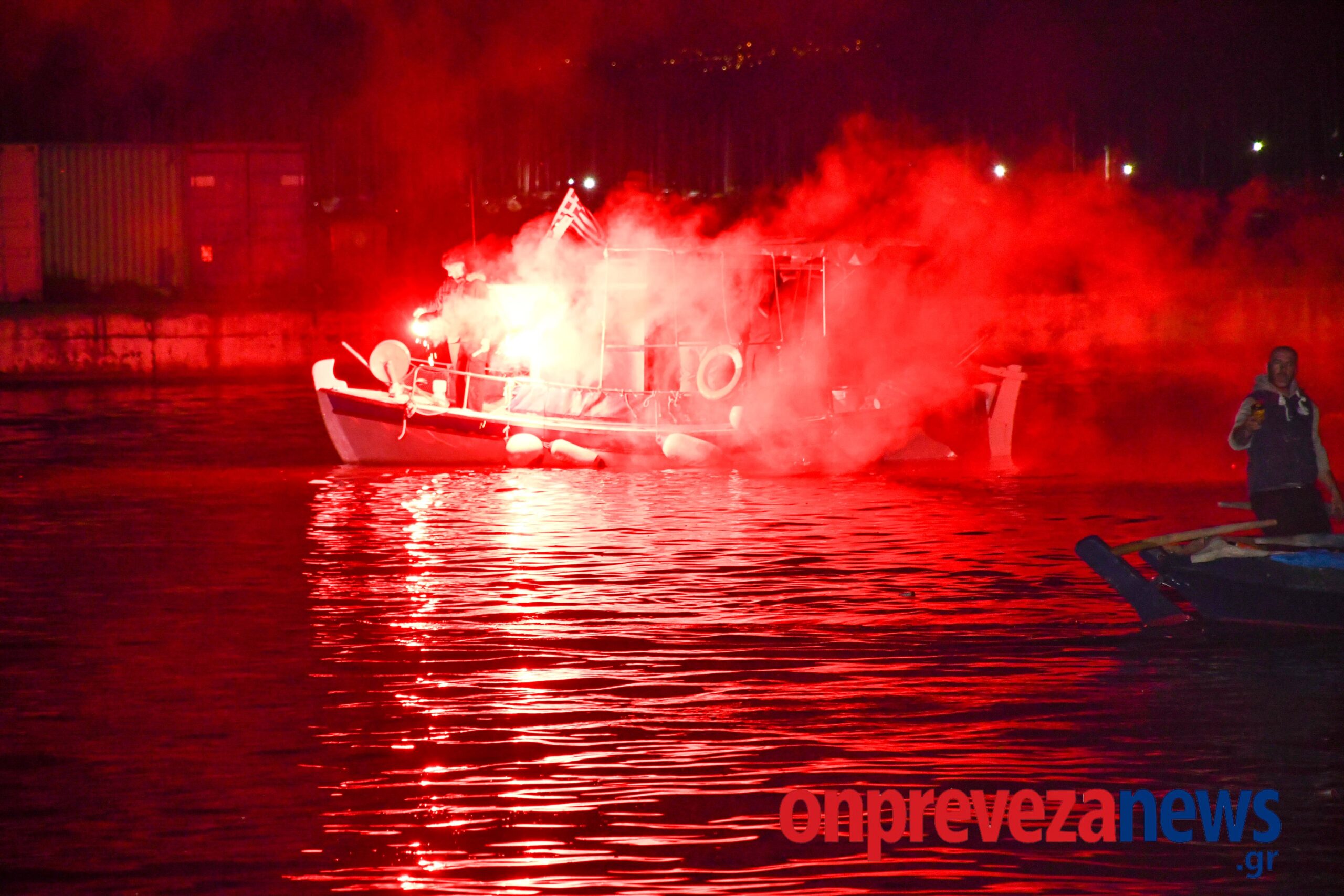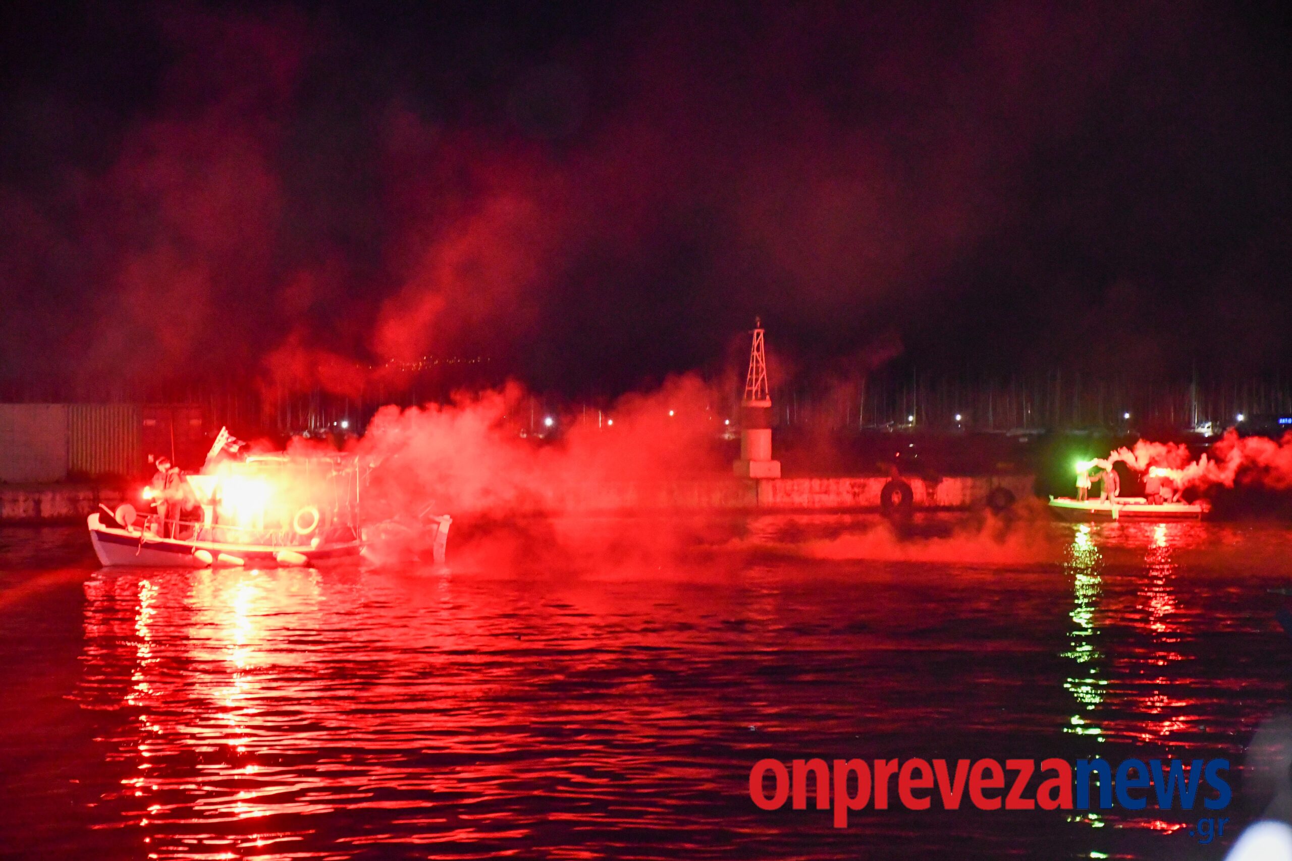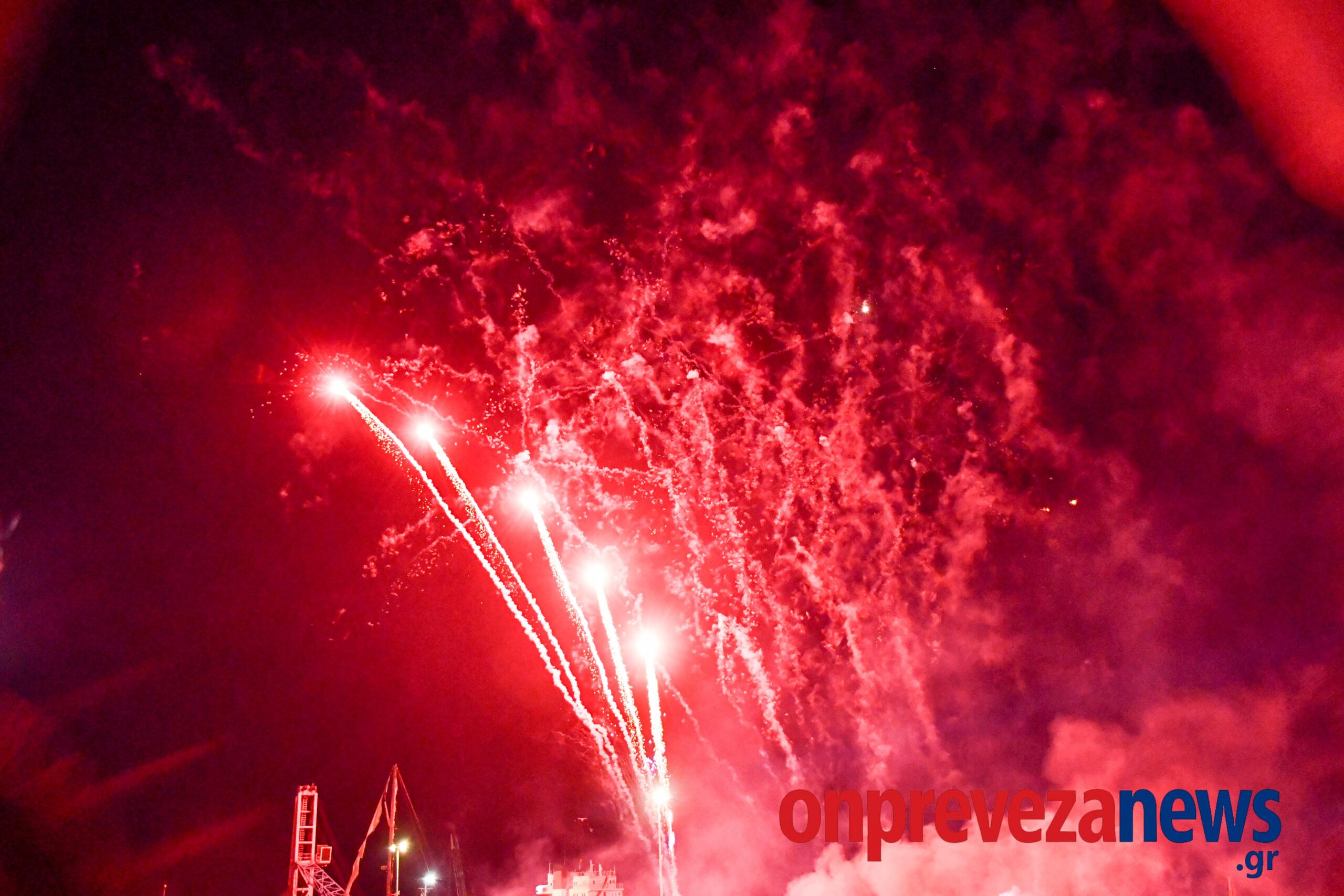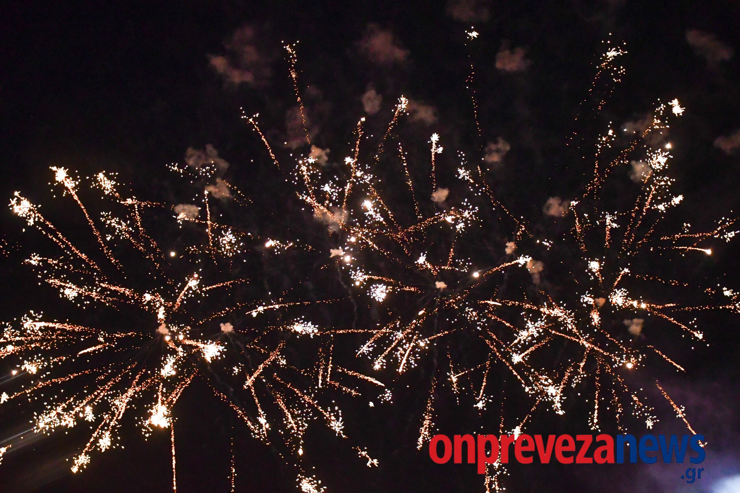 Όταν τα πρώτα πυροτεχνήματα φώτισαν τον ουρανό, η νύχτα έγινε μέρα. Χρώματα, σχήματα και εκρήξεις φωτός καθρεφτίζονταν στα νερά του Αμβρακικού, δημιουργώντας ένα μαγευτικό σκηνικό. Δεκάδες βάρκες είχαν πάρει θέση μέσα στη θάλασσα, μετατρέποντας τον κόλπο σε μια πλωτή γιορτή, με πυροτεχνήματα να εκτοξεύονται από στεριά και θάλασσα, σε ένα υπερθέαμα που καθήλωσε τους πάντες.