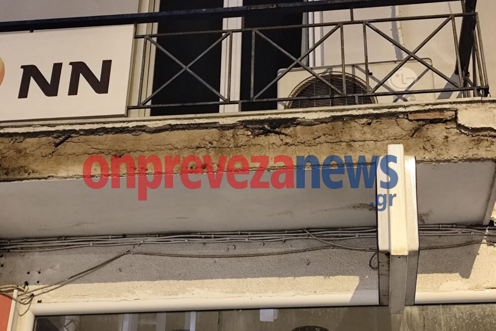 Τεράστια κομμάτια σοβά αποκολλήθηκαν από μπαλκόνι πολυκατοικίας, δίπλα από τα γραφεία του Ιατρικού Συλλόγου Πρέβεζας, και κατέρρευσαν στο πεζοδρόμιο και το οδόστρωμα, προκαλώντας τρόμο στους περιοίκους.