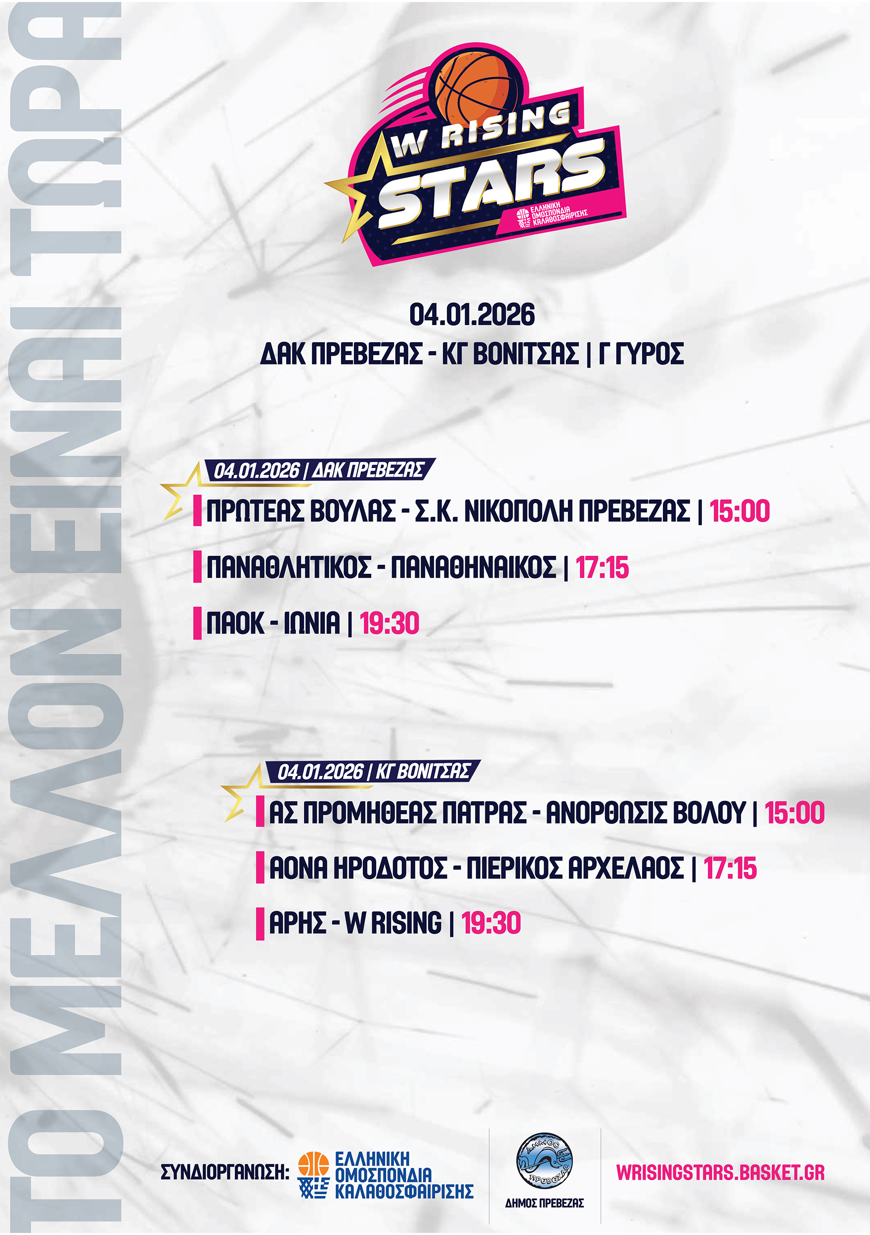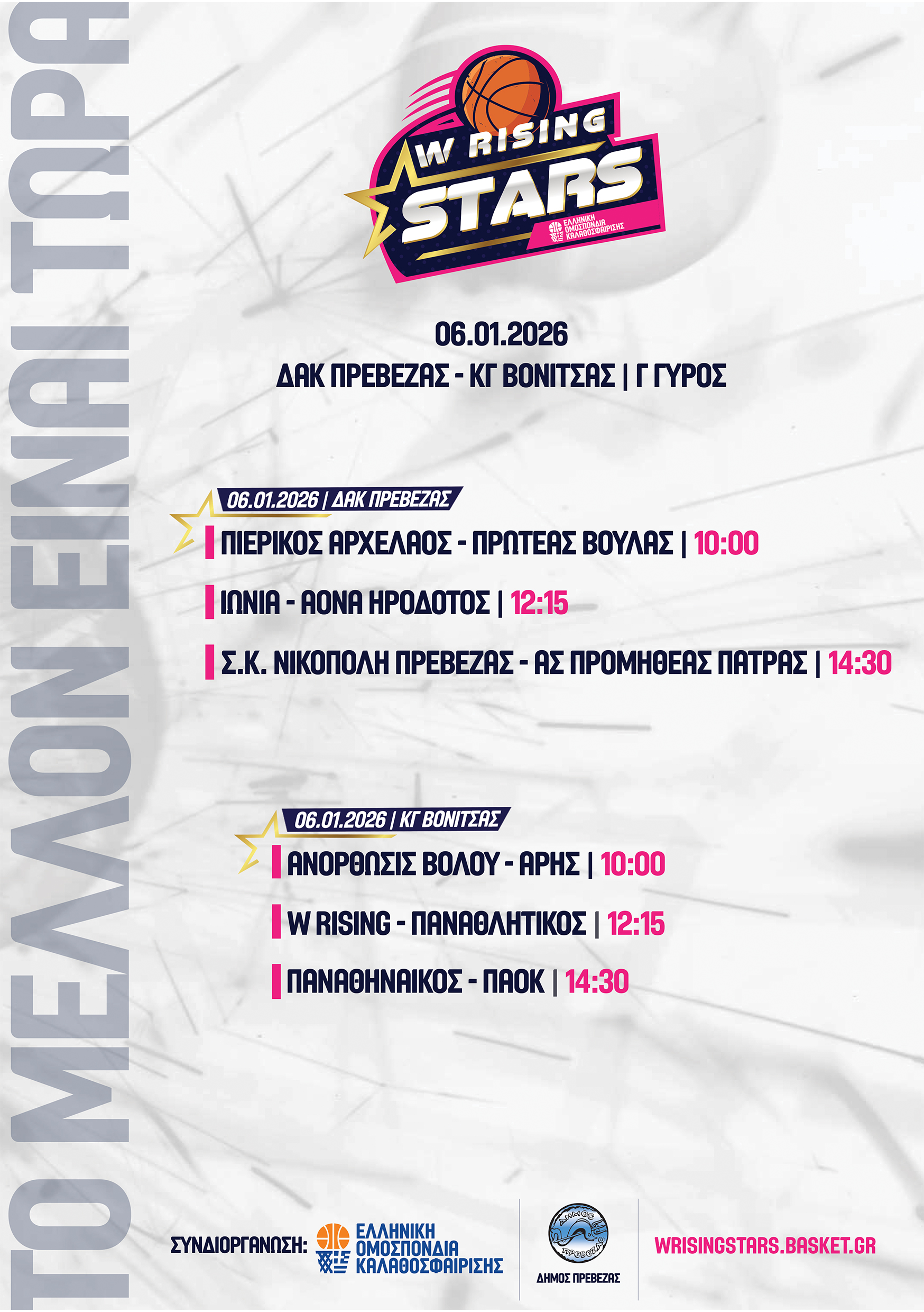 O Σ.Κ. Νικόπολη Πρέβεζας έχει τη μεγάλη τιμή να φιλοξενήσει στην Πρέβεζα τον 3ο γύρο του Women Rising Stars, ο οποίος θα διεξαχθεί το διάστημα 04/01/2026 έως 06/01/2026, αποτελώντας ένα από τα μεγαλύτερα μπασκετικά event που έχουν πραγματοποιηθεί ποτέ στην πόλη Πρέβεζα. Οι αγώνες συνδιοργανώνονται από την Ελληνική Ομοσπονδία Καλαθοσφαίρισης και τον Δήμος Πρέβεζας.