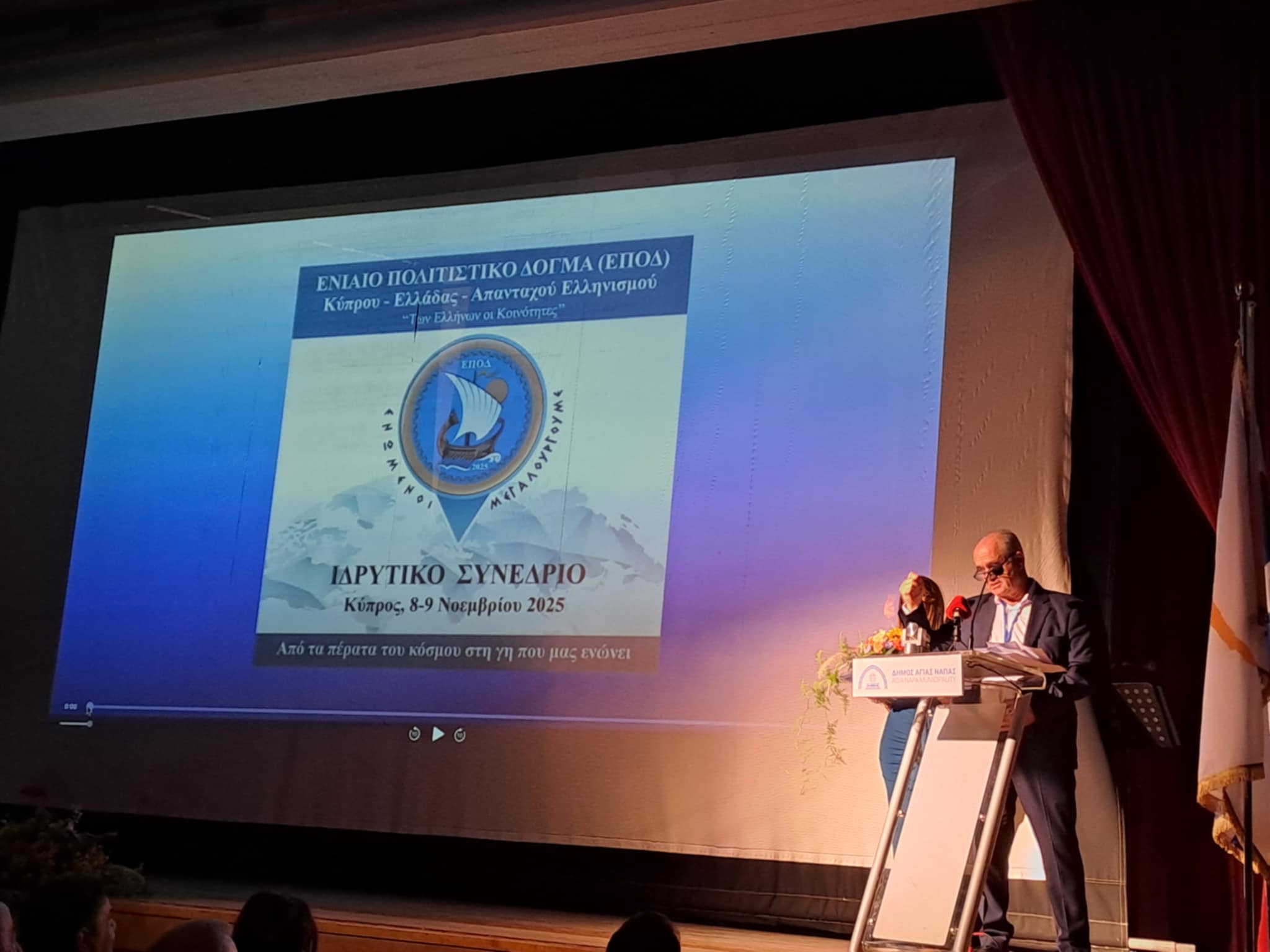 Με ιδιαίτερη επιτυχία πραγματοποιήθηκε στην Κύπρο, στην πόλη της Αγίας Νάπας, στις 8 και 9 Νοεμβρίου 2025, το Ιδρυτικό Συνέδριο για το Ενιαίο Πολιτιστικό Δόγμα Κύπρου–Ελλάδας, Απανταχού Ελλήνισμού, ένα σημαντικό πολιτιστικό και πνευματικό γεγονός που σηματοδότησε την απαρχή μιας νέας εποχής συνεργασίας και ενότητας ανάμεσα στις δύο χώρες.
