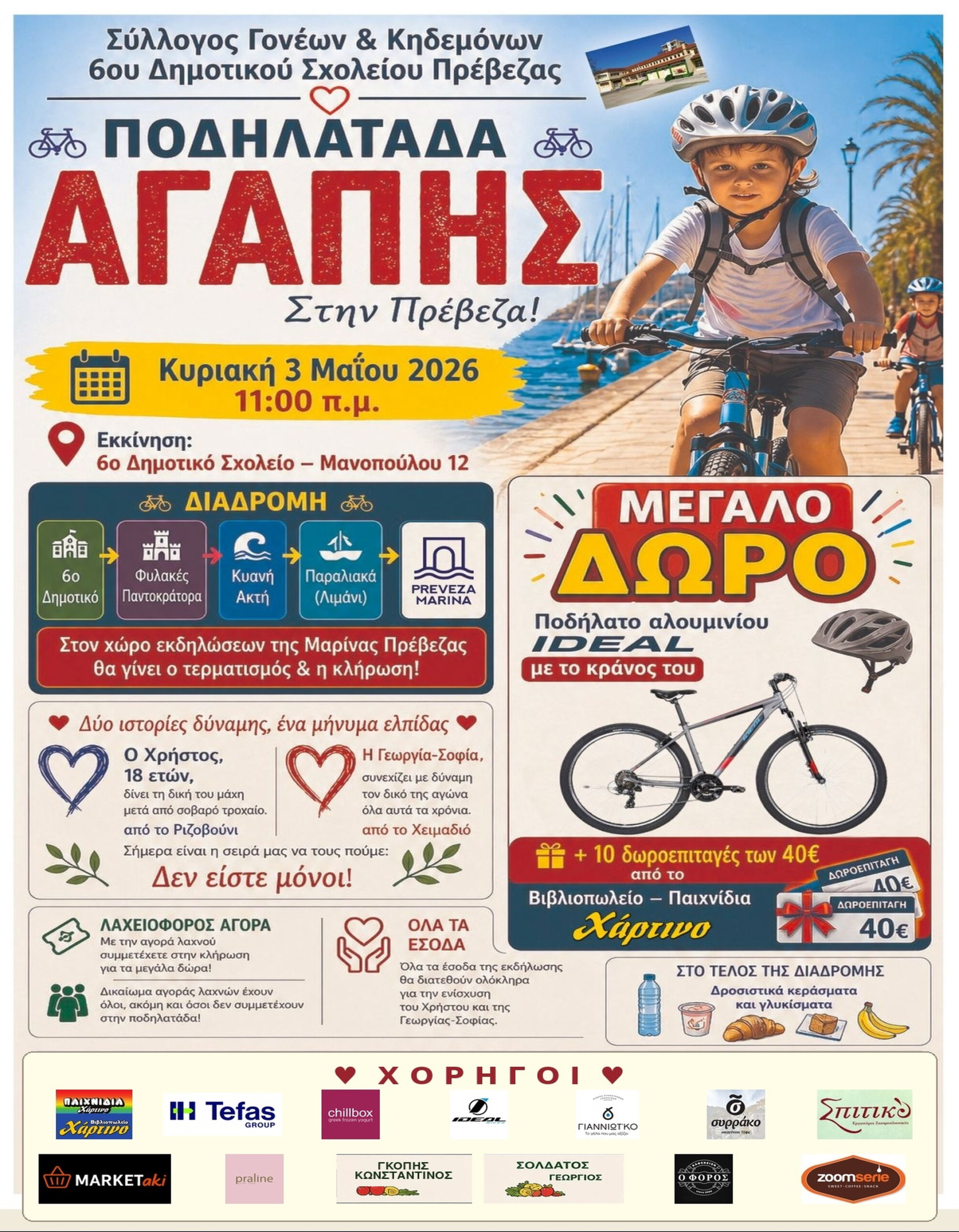 Σύλλογος Γονέων & Κηδεμόνων 6ου Δημοτικού Σχολείου Πρέβεζας: «Ποδηλατάδα Αγάπης» – Κυριακή 3 Μαΐου 2026 | Πρέβεζα