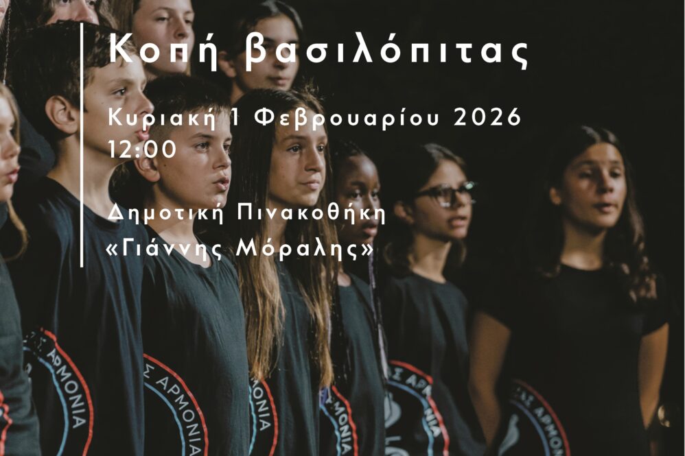 Το Διοικητικό Συμβούλιο της Χορωδίας ΑΡΜΟΝΙΑ Πρεβεζας θα χαρεί ιδιαίτερα να σας υποδεχθεί στην εκδήλωση κοπής της Βασιλόπιτας, η οποία θα πραγματοποιηθεί την Κυριακή 1η Φεβρουαρίου 2026, και ώρα 12.00, στην Δημοτική Πινακοθήκη “Γιάννης Μόραλης”.