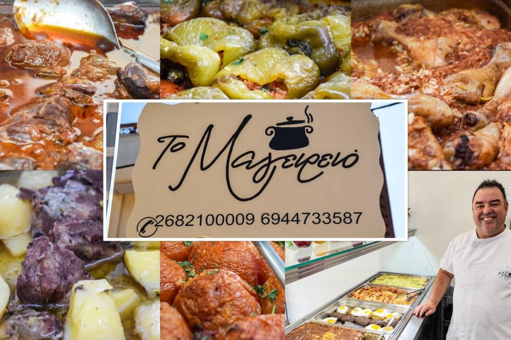 Στο μαγειρειό το φαγητό είναι απόλαυση και μπορείτε με ένα απλό τηλεφώνημα να το έχετε σπίτι ή στο γραφείο καλώντας στο 2682100009 ή στο 6944 733587, από τις 11.00 έως τις 16.00 και Σάββατο 11.00 έως 15.00.