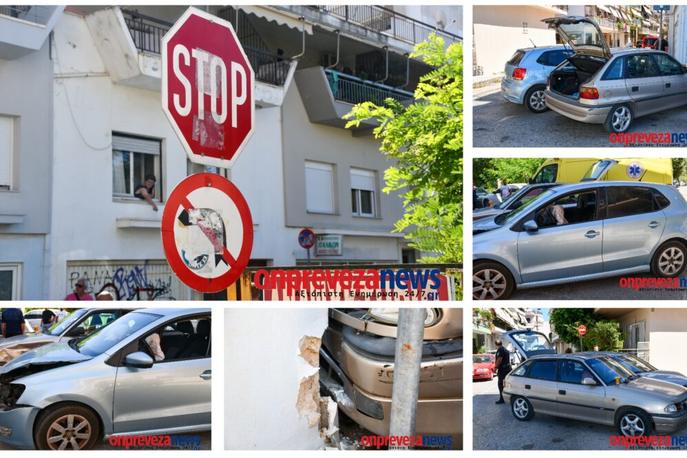 Από τη σύγκρουση, το πρώτο όχημα εξετράπη της πορείας του και προσέκρουσε σε τοίχο παρακείμενης πολυκατοικίας. Σε αυτό επέβαιναν τρία άτομα, μεταξύ των οποίων και ένα ανήλικο κορίτσι, το οποίο μεταφέρθηκε προληπτικά με ασθενοφόρο του ΕΚΑΒ στο Νοσοκομείο Πρέβεζας.