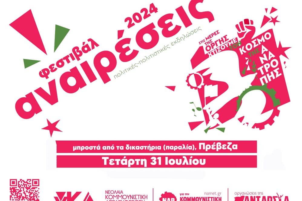 Το Φεστιβάλ Αναιρέσεις επιστρέφει την Τετάρτη 31/7 στη παραλία της Πρέβεζας μπροστά από τα δικαστήρια. Ένα φεστιβάλ που έχει αποτελέσει σημαντικό θερινό πολιτικό – πολιτιστικό σταθμό στην πόλη.